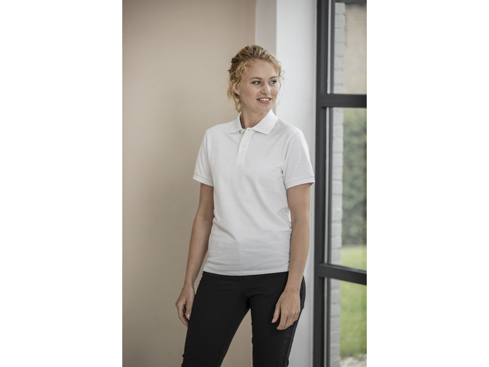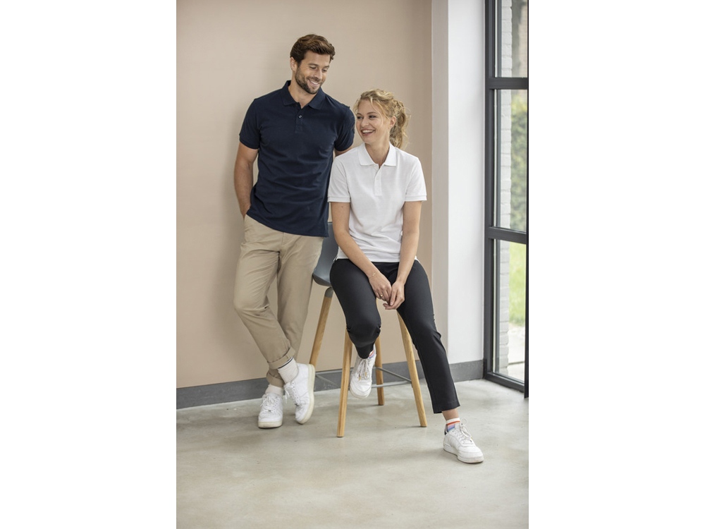 Данное поло обеспечивает комфорт и долговечность, дополненное манжетами в рубчик 1×1 на концах рукавов. Поло также имеет сертифицированные GRS пуговицы, что еще больше снижает воздействие на окружающую среду. Эта футболка-поло с боковыми разрезами для удобства движений отличается функциональностью. Изготовлена из трикотажа пике плотностью 200 г/м² из переработанного хлопка с добавлением переработанного полиэстера.