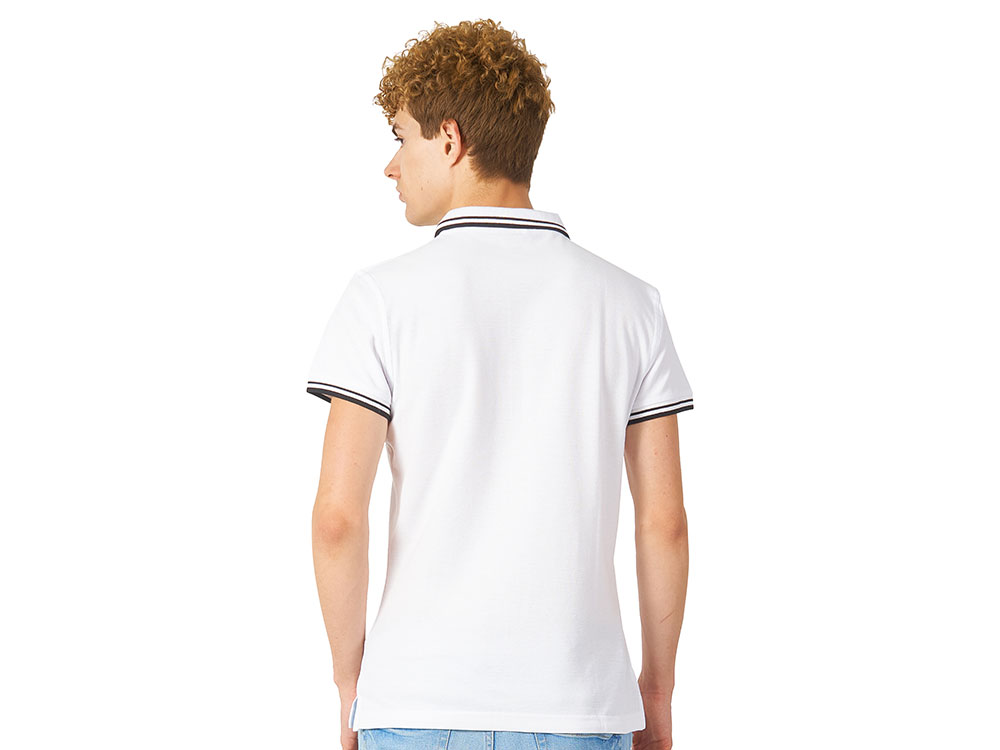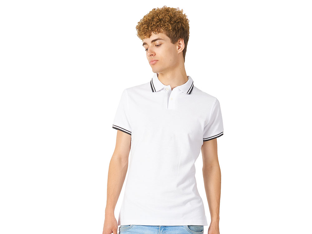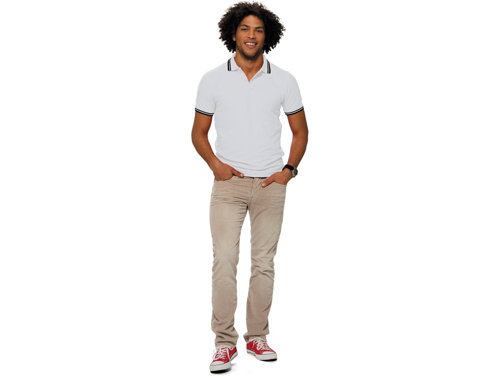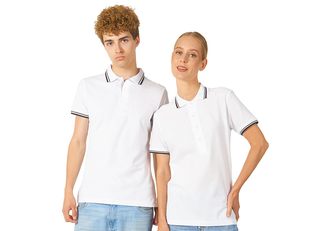 Рубашка-поло Erie с окантовкой. Воротник и манжеты резинка 1х1. Мужская модель с двумя пуговицами, женская — 4 пуговицы в тон изделия. Обшивка внутри воротника. Женская модель с разрезами по бокам. Женская модель приталена. Пике, 100% чесаный хлопок. Плотность 180 г/м2.