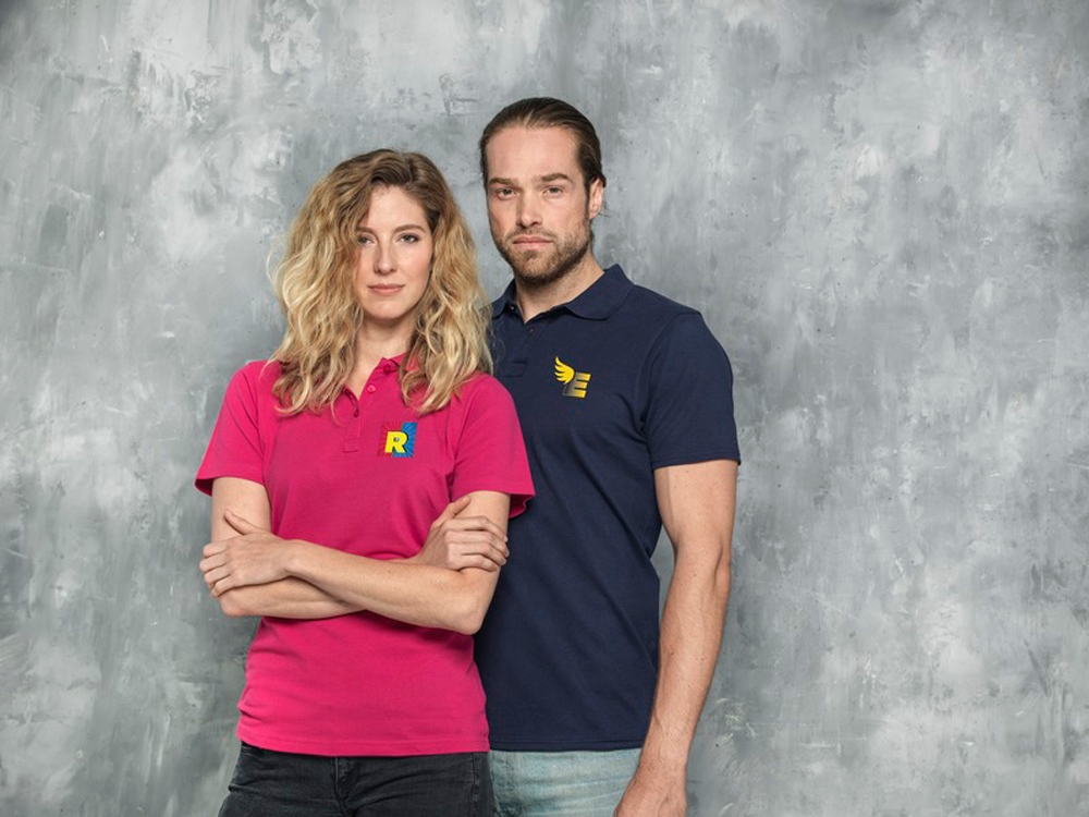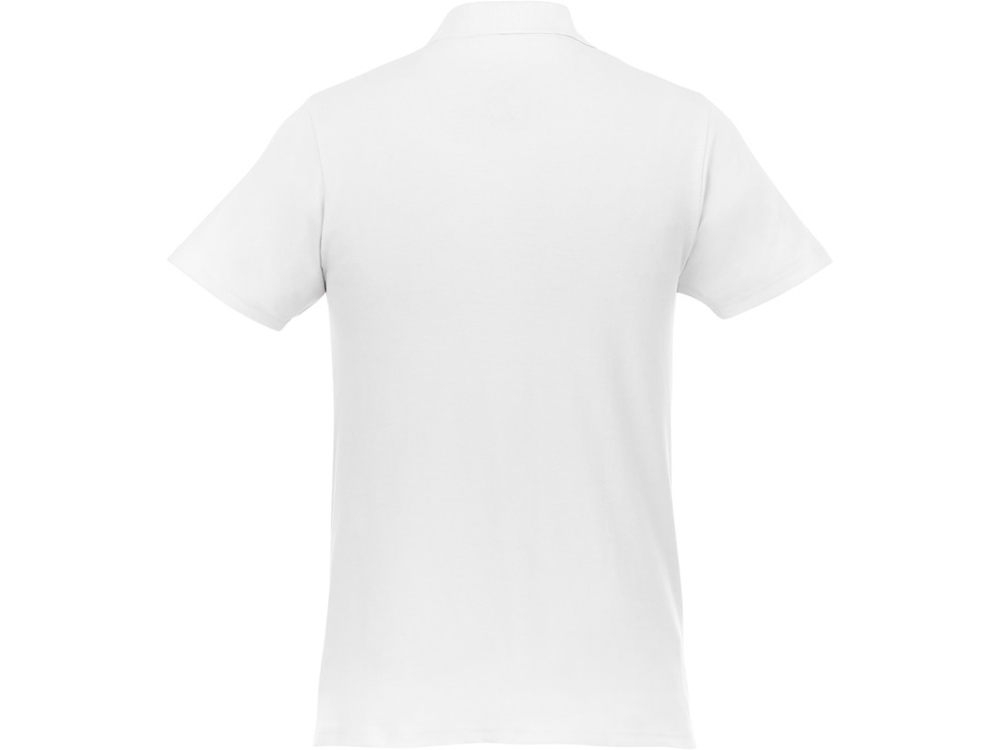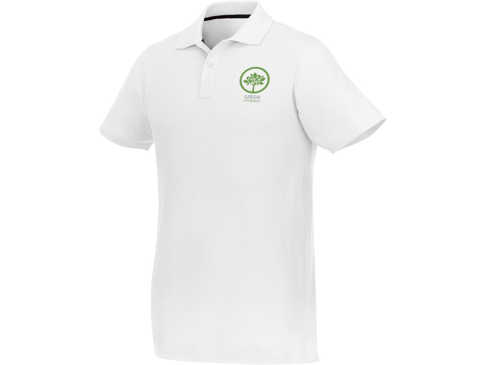 Мужское поло Helios с коротким рукавом. Отрезной-отрывной ярлык для комфорта. Воротник гладкой вязкой в рубчик. Планка с двумя пуговицами. Двойная строчка на воротнике и внизу изделия. Пуговицы в цвет изделия. Полоска на горловине в контрастном цвете. Трикотаж Piqué, 100 % хлопок. 180 г/м².
