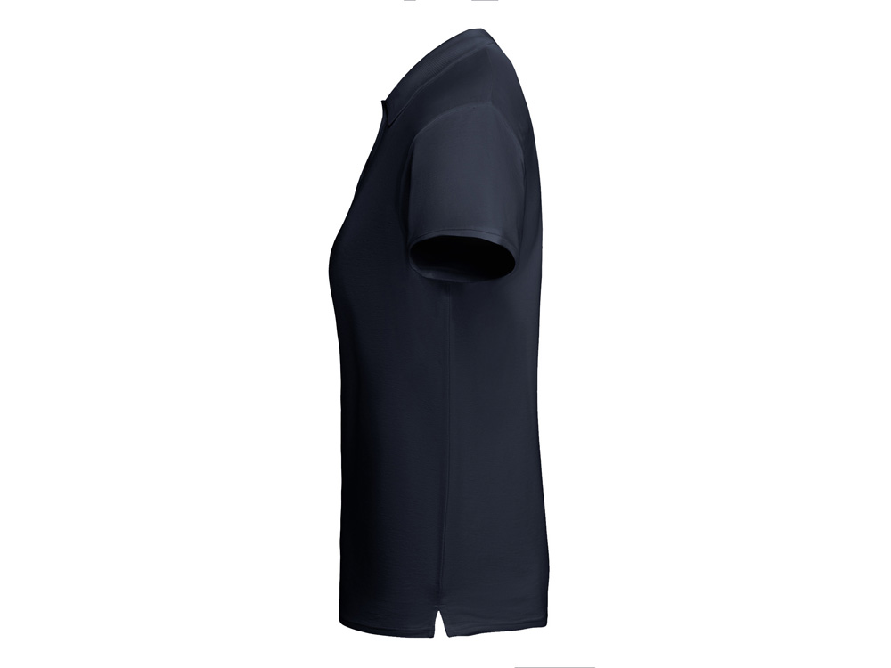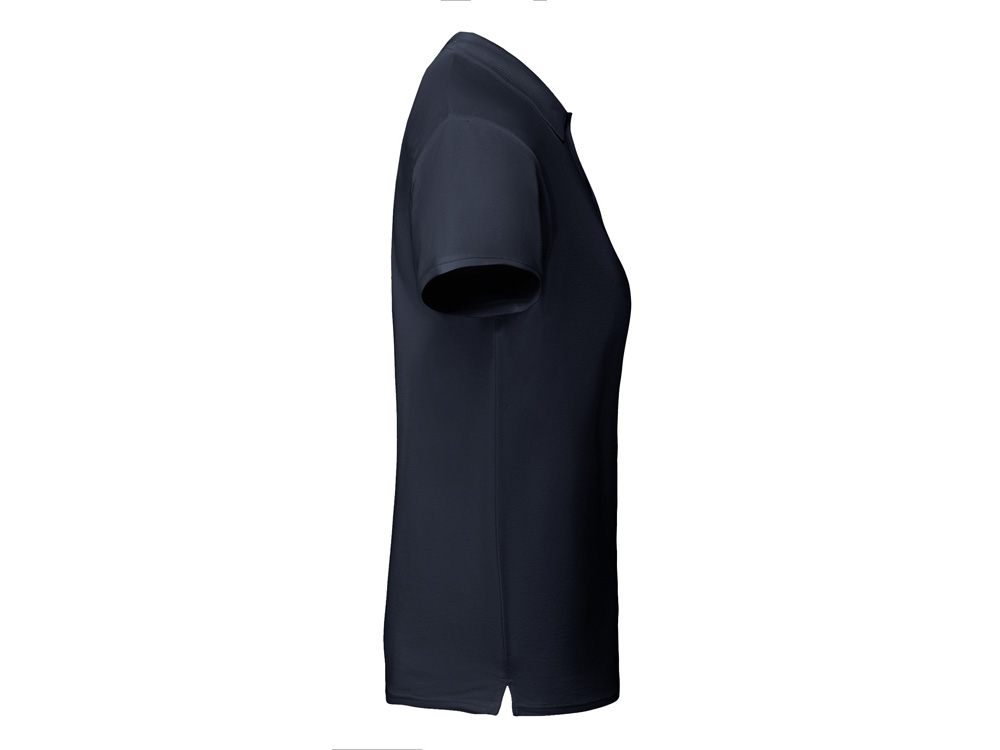 Приталенная женская рубашка поло с коротким рукавом из органического хлопка, сертифицированного OCS. Воротник и манжеты из риба 1×1. Разрез с застежкой на 2 пуговицы. Усиленные закрытые швы в воротнике. Боковые разрезы в швах.