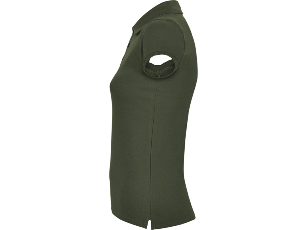 Поло с коротким рукавом для женщин приталенного силуэта. Воротник и манжеты из риба 1х1, отделка горловины внутри тесьмой. Элегантная планка застегивается на 3 пуговицы. Разрезы в боковых швах.