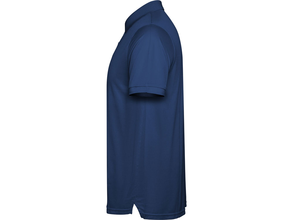 Мужское поло с коротким рукавом из технологичного полотна. Рибовый воротник 1х1, застежка на кнопки. Отстрочка в тон. Рибовые манжеты.