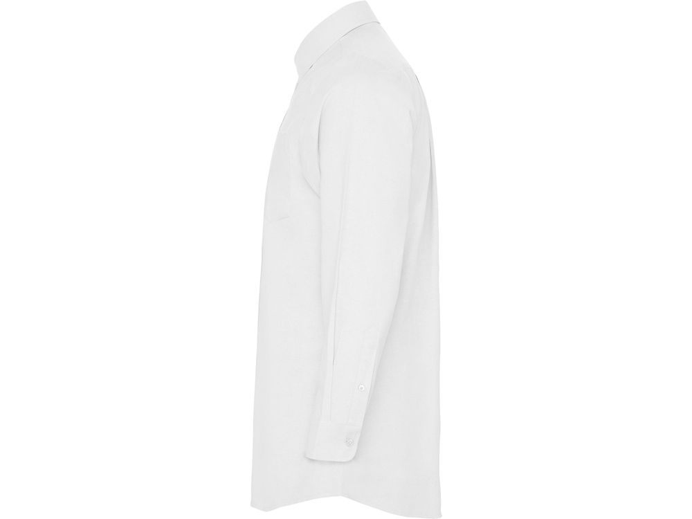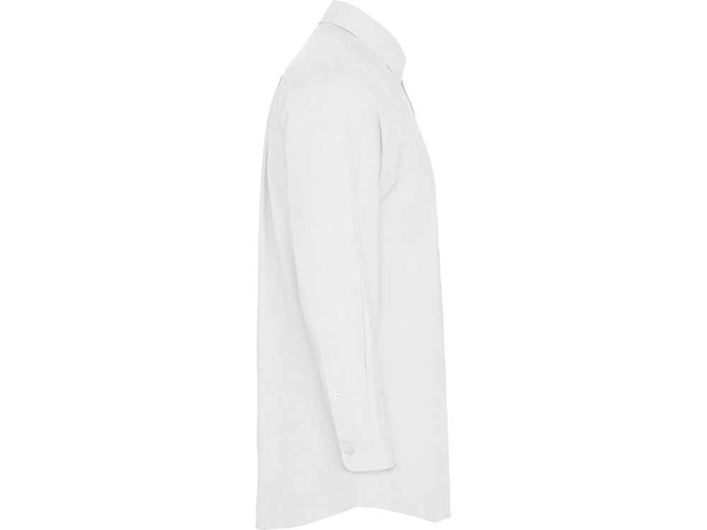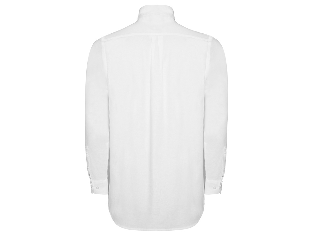 Мужская рубашка с длинным рукавом, накладной карман слева. Планка на пуговицах. Отложной воротник на стойке. Манжета регулируется по ширине с помощью 2-х пуговиц. Кокетка на спинке.