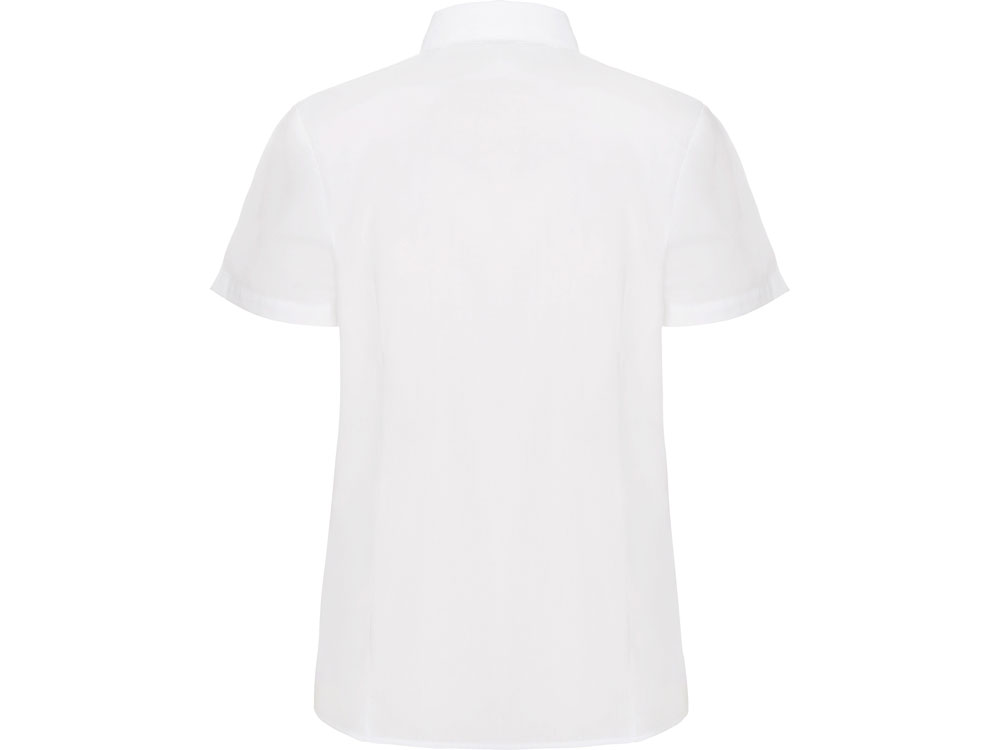Рубашка женская прилегающего силуэта с вытачками на полочке и спинке с коротким рукавом. Накладной карман на груди слева, закругленный низ изделия. Планка с потайными пуговицами.