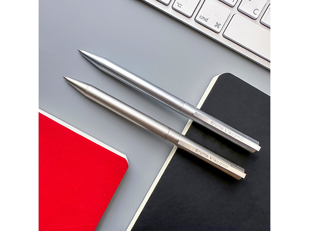 Шариковая ручка из коллекции «Bergamo» в металлическом корпусе. Ручка автоматическая с легким поворотным механизмом подачи стержня. Надежный пишущий узел d 0,7 мм (от швейцарского производителя Premec) гарантирует высокое качество также, как и пигментные чернила Dokumental (Германия). Благодаря им писать ручкой «Bergamo» от Bruno Visconti одно удовольствие – она мягко скользит по поверхности бумаги, оставляя ровную, четкую линию.