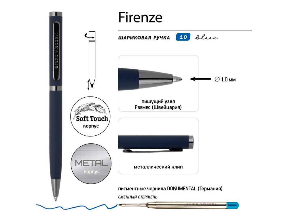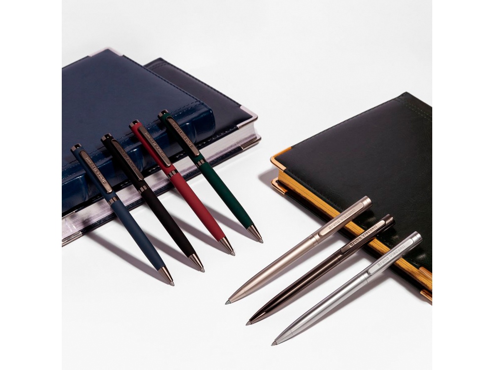 Лаконичный дизайн, прочный металлический корпус, строгость формы подчеркнут статус владельца ручки. Удобство в эксплуатации и тактильно приятные ощущения подарит бархатистое покрытие Soft Touch.