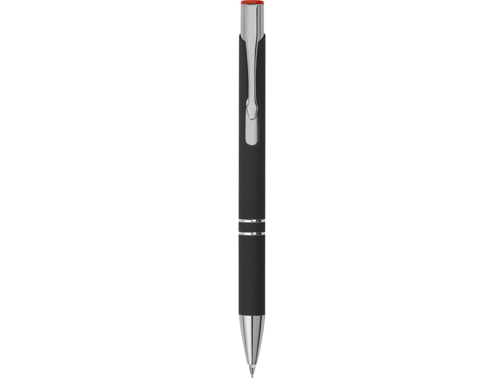 Черная шариковая ручка с кнопочным механизмом и тактильно приятным покрытием софт-тач. Цветная гравировка соответствует цвету кнопки и делает ее еще более изысканным подарком.
