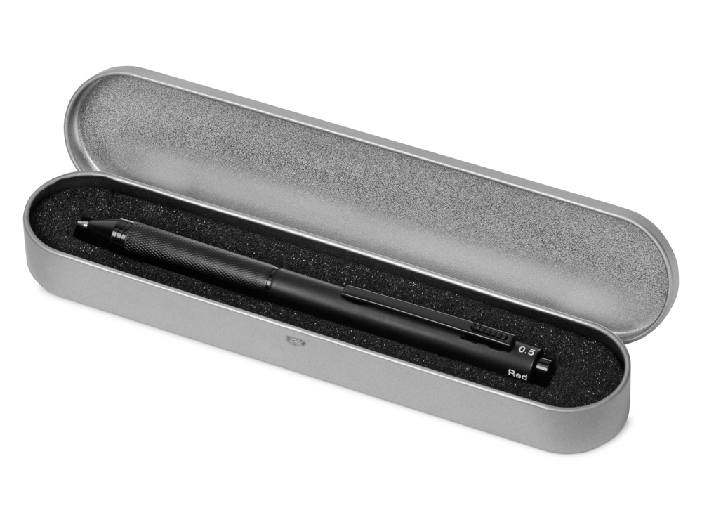 Мультисистемная металлическая ручка «System» отличается универсальностью и многофункциональностью. В строгом минималистичном корпусе умещаются чернила трех цветов — синего, черного и красного — и карандашный грифель толщиной 0,5 мм. Благодаря автоматическому переключению на нужный тип пишущего элемента, ручка заменяет целый набор письменных принадлежностей. Поставляется в металлическом серебристом футляре с матовым покрытием.