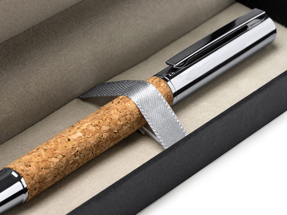 Ручка роллер из натуральной пробки и металла. Поставляется в элегантном футляре из пробки с мягкой внутренней отделкой.
