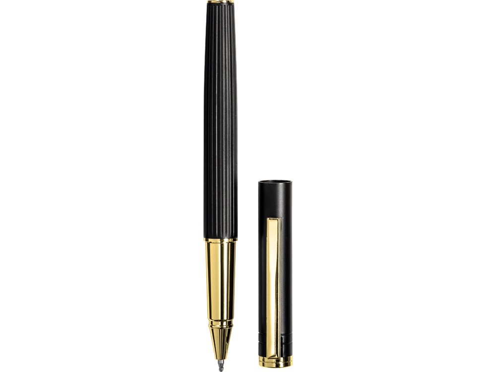 Современное прочтение классической ручки с золотыми деталями, при гравировке колпачка вскрывается золотистый слой, корпуса – серебристый.
