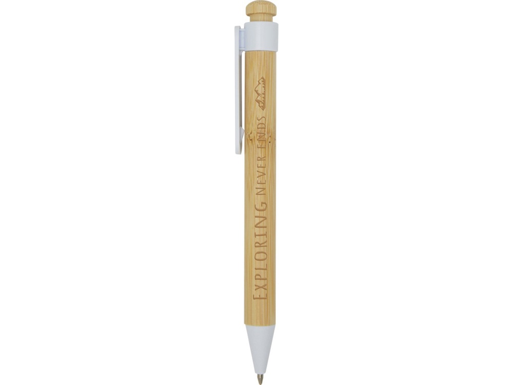 Шариковая ручка с зажимом и наконечником из переработанного пластика, а кнопка и корпус изготовлены из бамбука. Цвет чернил: черный. Длина непрерывной линии: 1000 метров. Размер пера: 1,0 мм. Бамбук.