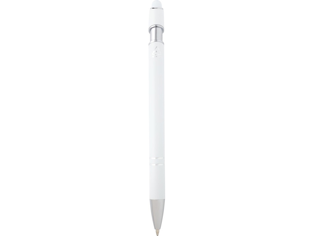 Шариковая ручка Kish с серебряным покрытием имеет корпус из переработанного алюминия и сенсорный стилус из силикона. Переработанный алюминий уменьшает количество отходов на свалках и помогает сохранять природные ресурсы для сокращения выбросов парниковых газов. Цвет чернил: синий. Длина непрерывной линии: 800 метров. Размер пера: 1,0 мм. Recycled Aluminium.