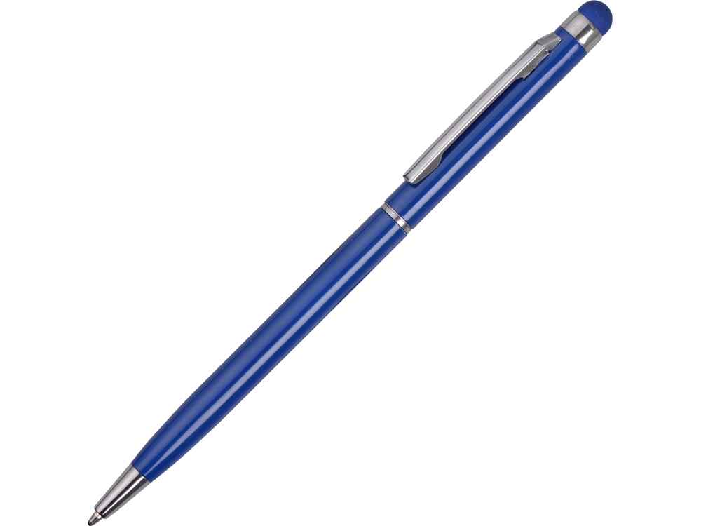 Тонкая металлическая шариковая ручка с поворотным механизмом и стилусом. Функциональный и стильный аксессуар станет отличным подарком.
