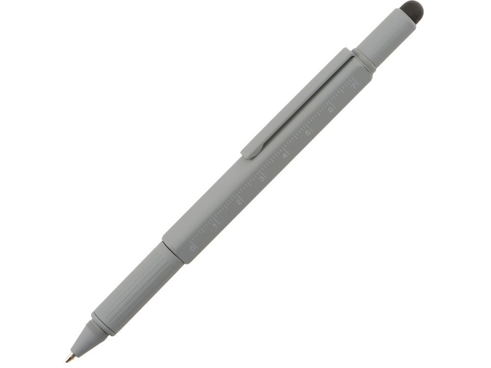 Четырехгранная металлическая ручка в одном корпусе сочетает несколько полезных функций: • Стилус для работы с устройствами с сенсорными экранами. • Под стилусом располагаются крестовая и шлицевая отвертки. • В металлический корпус встроен уровень, на корпусе линейка. • Стальной клип будет держать ручку надежно в кармане. • Возможность нанесения логотипа сразу на несколько граней ручки.