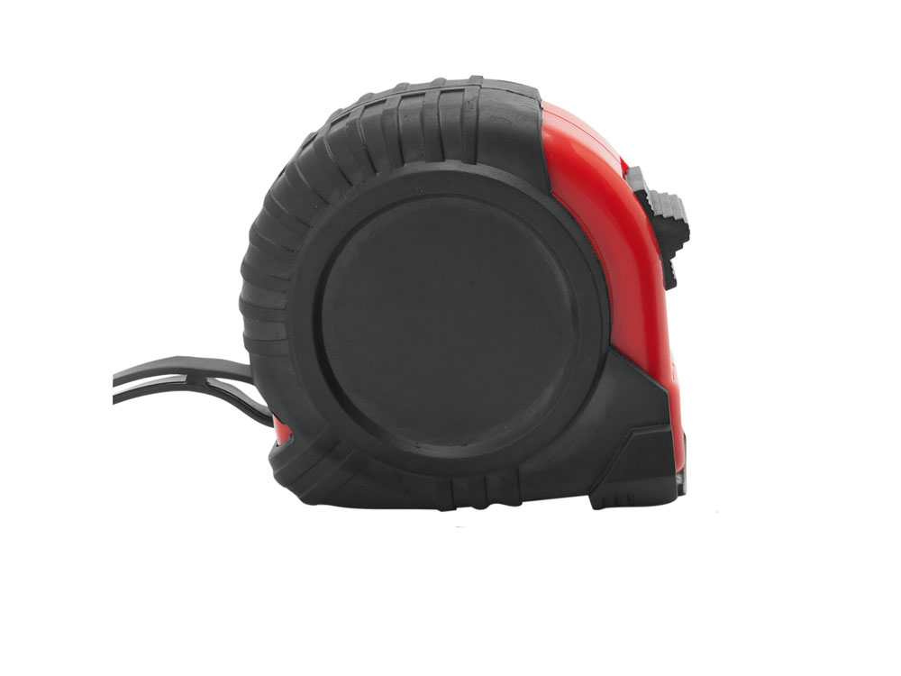 5-метровая рулетка с фиксирующим механизмом. Цветной прорезиненный корпус с резиновым чехлом, металлический зажим и ремешок для переноски.