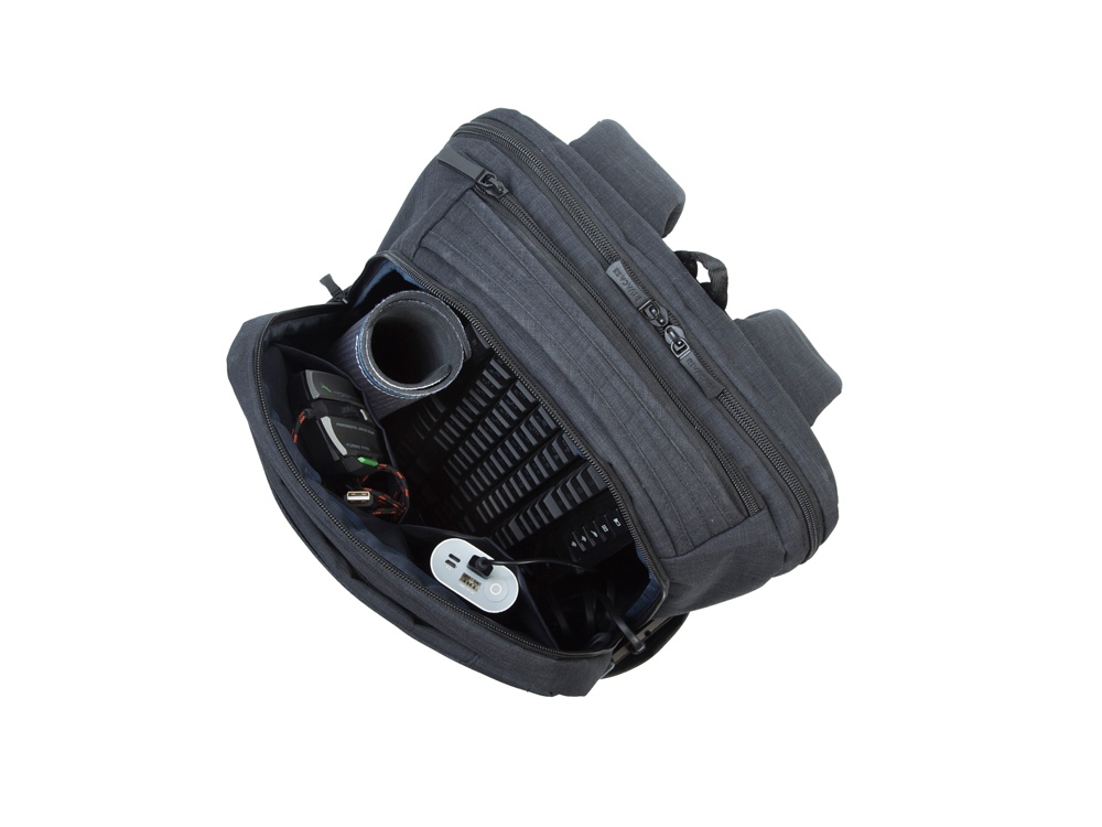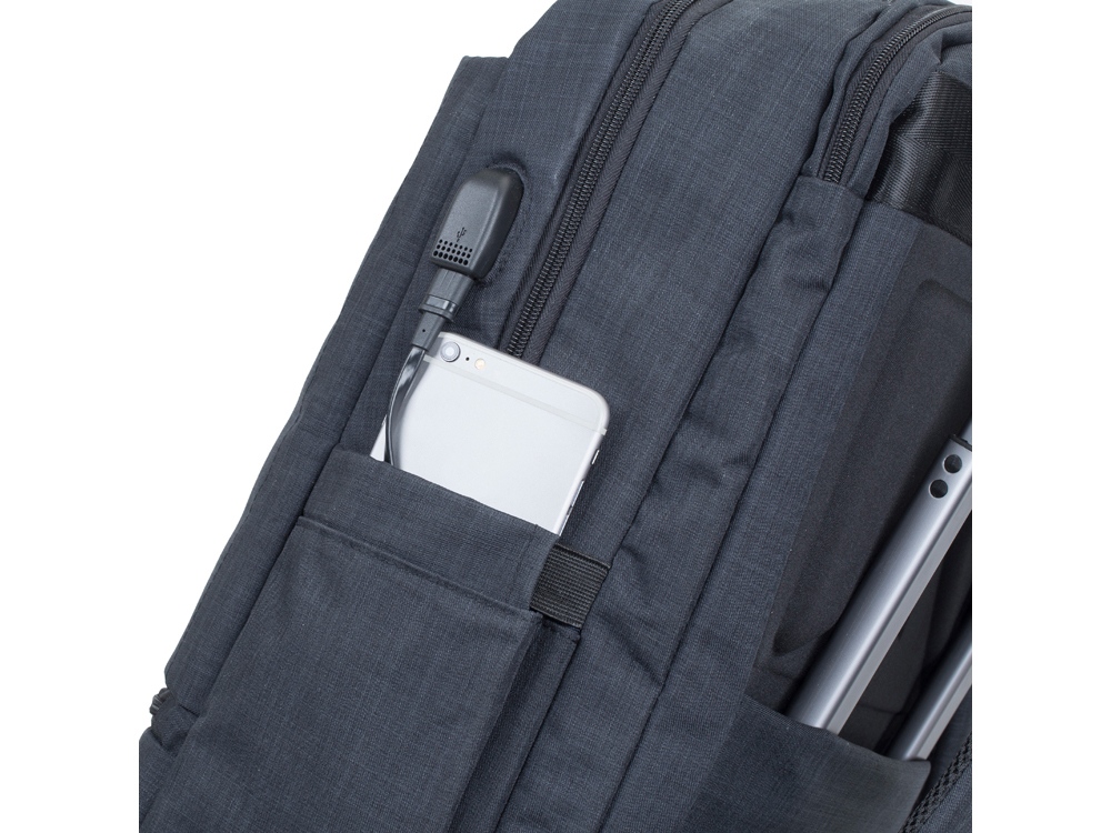 • На боковой стороне рюкзака имеется USB-порт для подключения портативного внешнего аккумулятора.