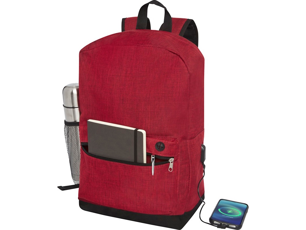 Передняя панель рюкзака для ноутбука оформлена с эффектом меланжевой расцветки, а нижняя часть и задняя панель окрашены в черный цвет. Оснащен большим главным отделением на молнии с чехлом для ноутбука 15,6″ и передним отделением на молнии для быстрого доступа к мобильным устройствам. Поставляется с портом для USB, включая кабель USB-A с 1 выходным разъемом и 1 – входным. Имеет удобные плечевые ремни с подкладкой, ручку и сетчатый карман для бутылки с водой. Реальный цвет изделия может незначительно отличаться в зависимости от особенностей набивки, окраски и структуры ткани.