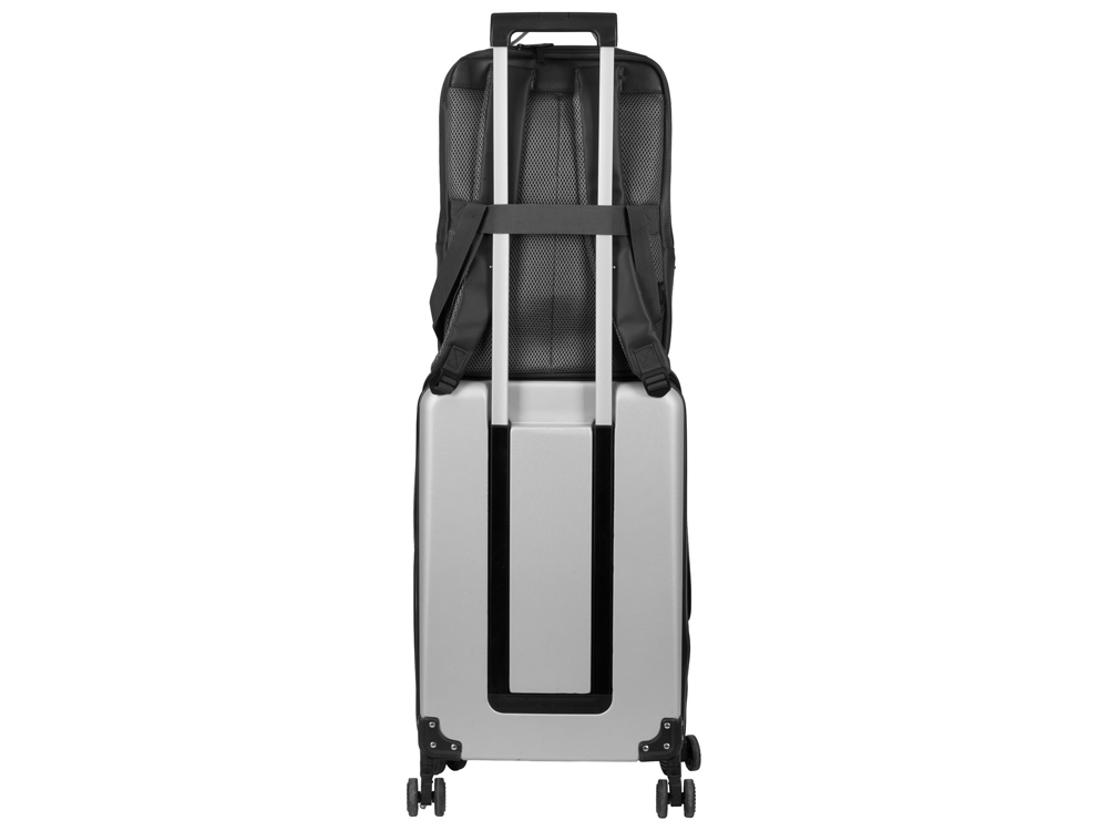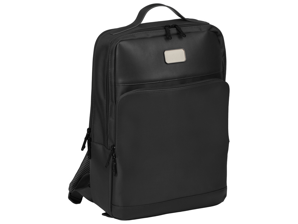 Бизнес-рюкзак из плотной ткани, хорошо держащий форму, имеет строгий и стильный дизайн. Внутри 2 отделения — для ноутбука и для одежды с органайзером и внутренним карманом на молнии. Снаружи расположено большое отделение на молнии. Рюкзак удобен для поездок, при этом компактен и оснащен ремнем для крепления к чемодану. В комплекте нетканый мешок для хранения и съемный металлический шильд для нанесения вашего логотипа.