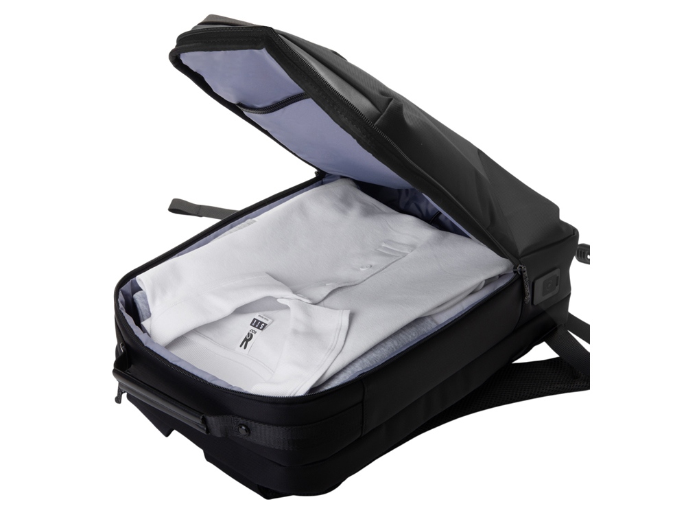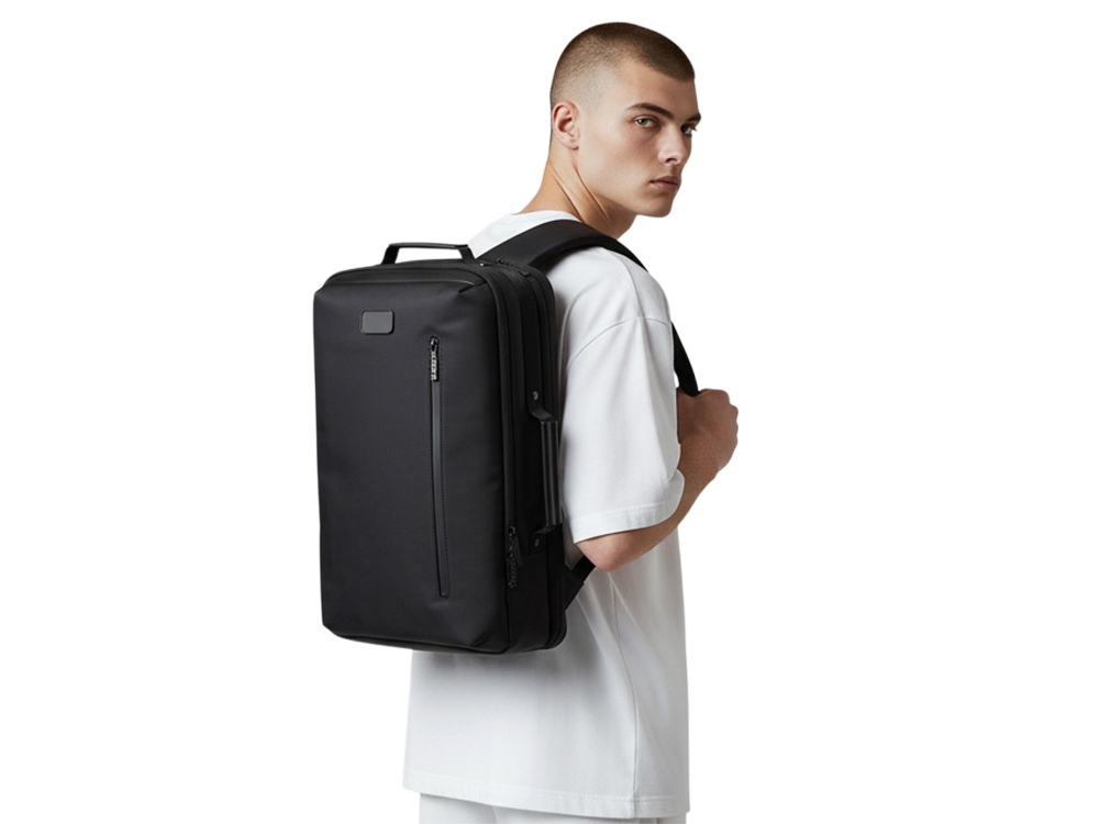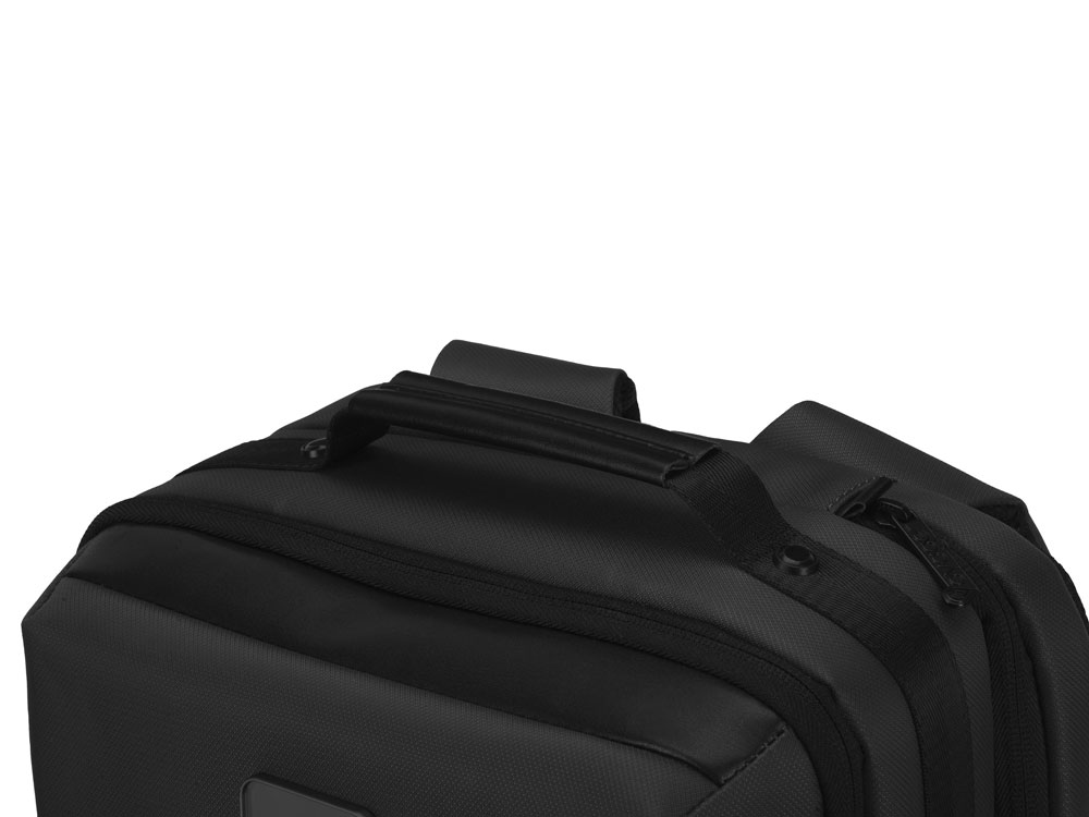 Рюкзак может легко превратится в деловую сумку для командировок, т.к. снабжен дополнительной ручкой для переноски в руке. В комплекте идет съемный металлический шильд под нанесение вашего логотипа.