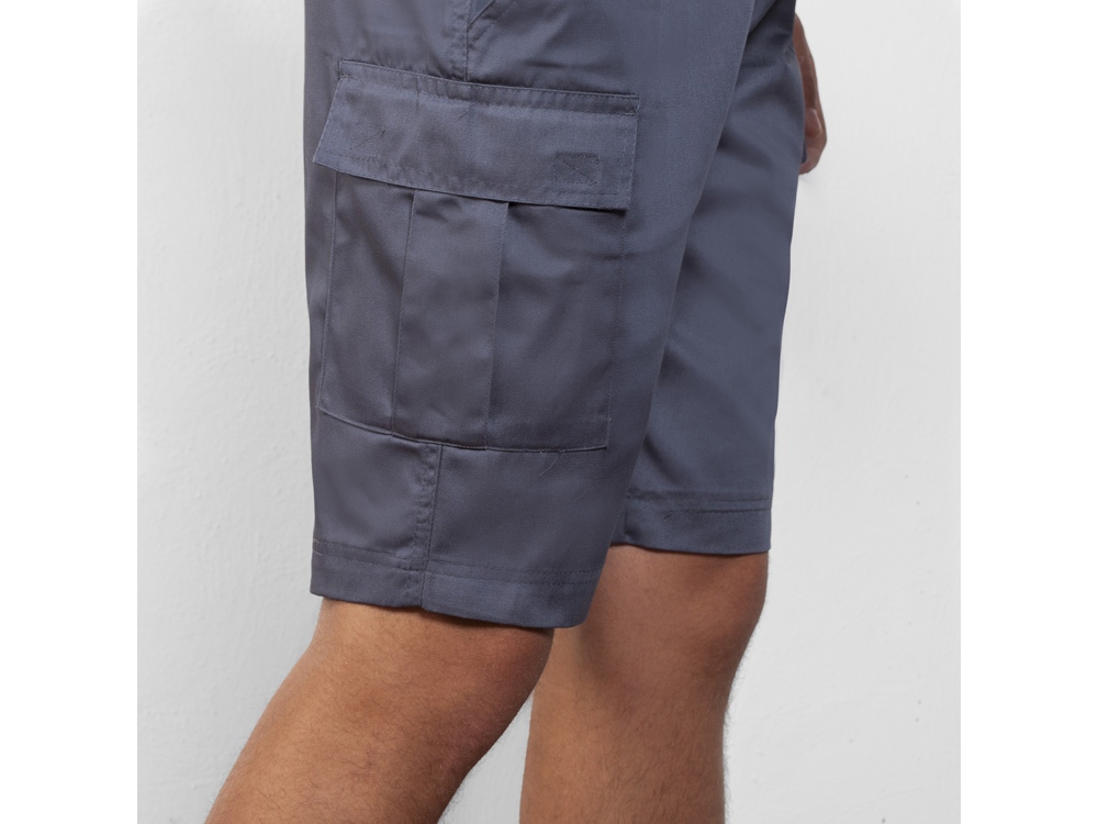 Шорты бермуды – регулируемый эластичный пояс по бокам – два передних кармана – два боковых кармана карго со складкой и клапаном застёгивается на липучку – два задних кармана на пуговице – два боковых кармана карго