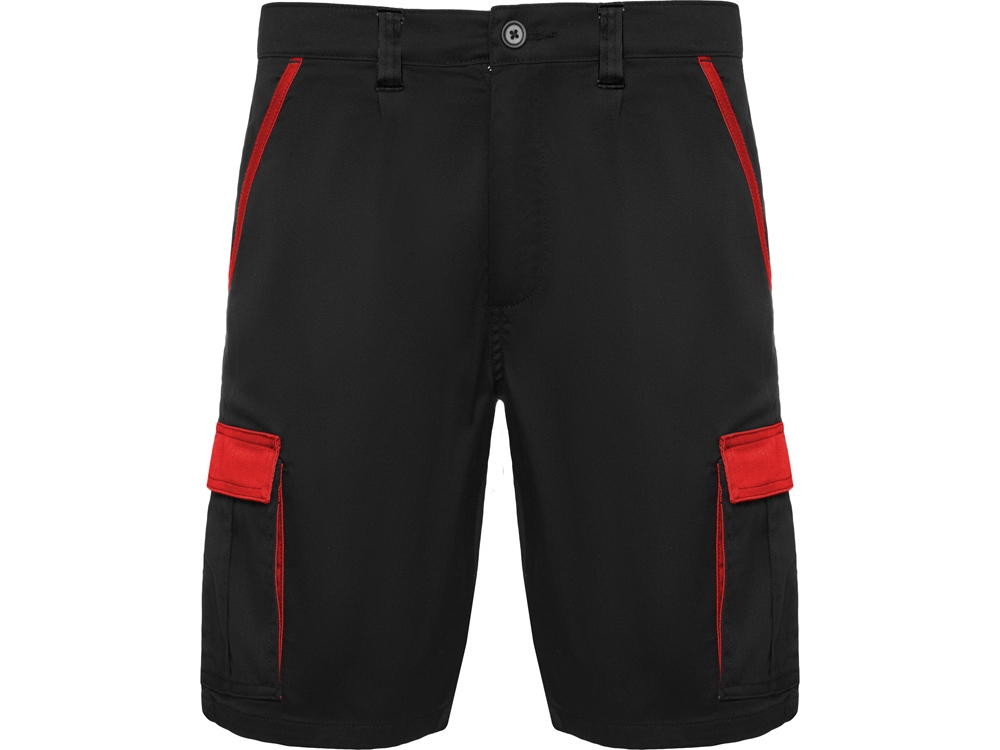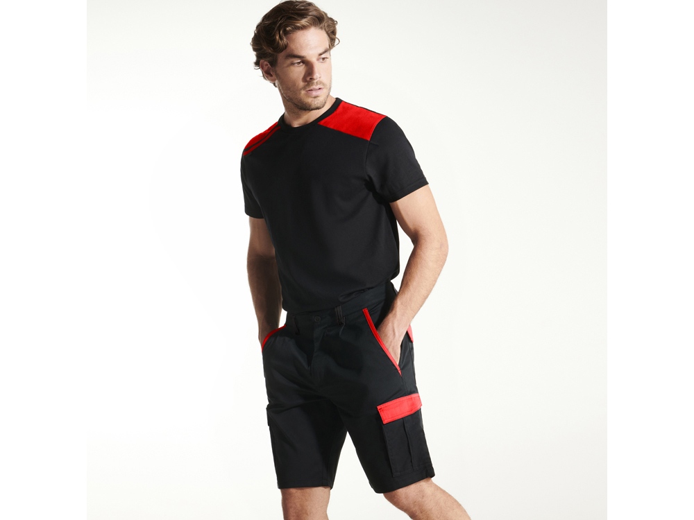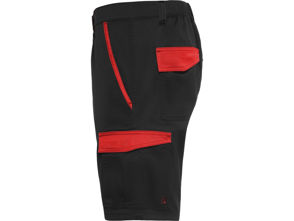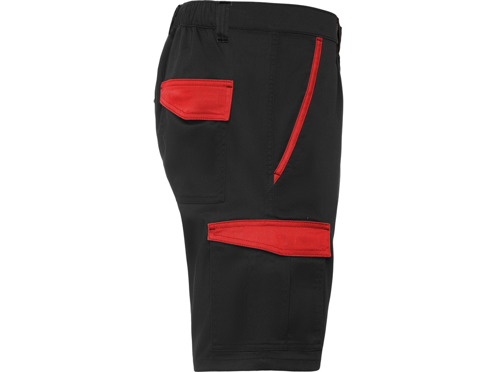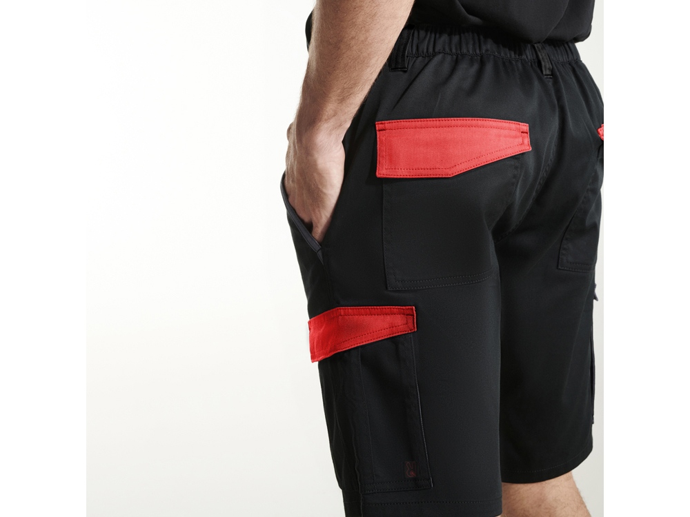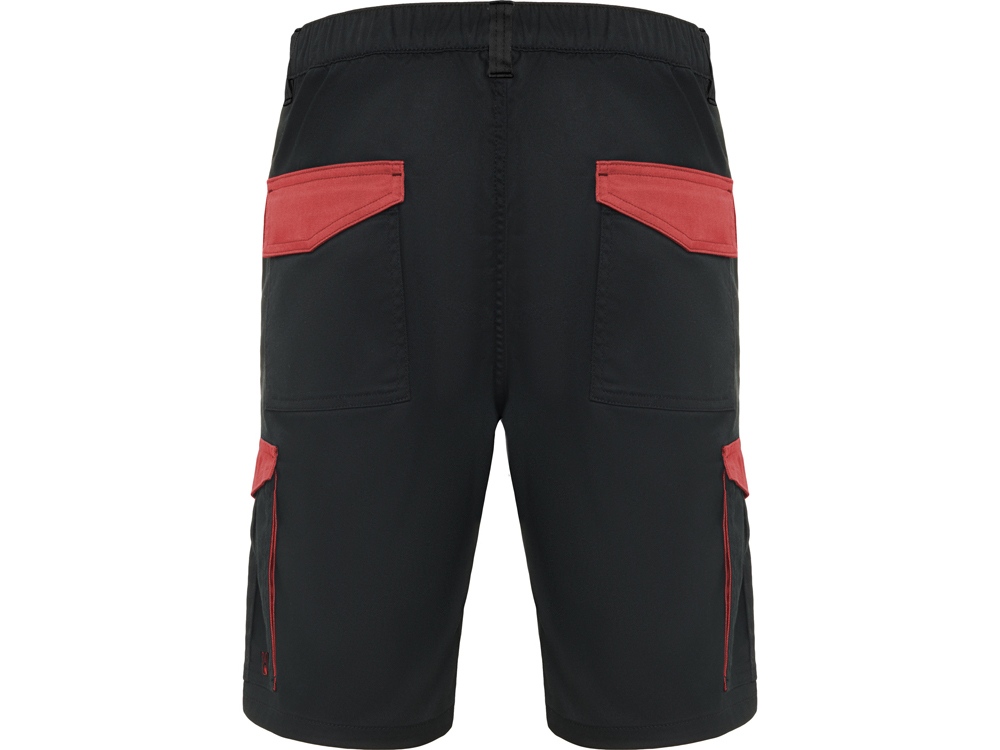 Шорты в двухцветной комбинации — Удобная и регулируемая ткань. — Контрастные петли для ремня, клапаны, складка и кант по краю кармана — Эластичный пояс сзади. — Два передних кармана. — Два задних кармана с клапаном и застежкой-липучкой. — Два боковых кармана со складкой и клапаном застегиваются на липучку.
