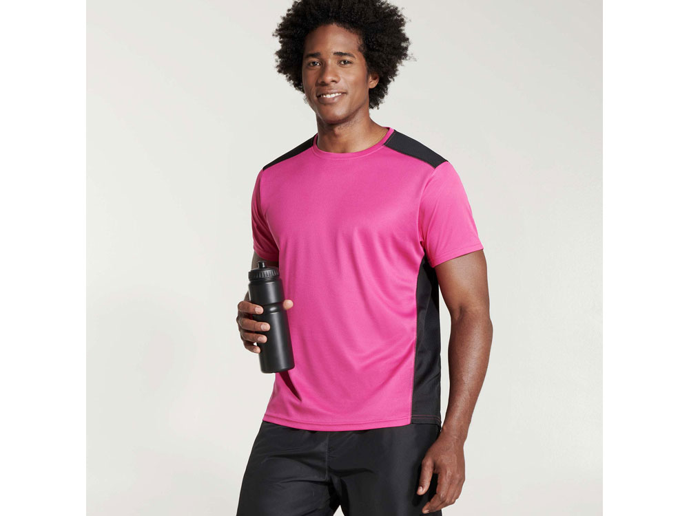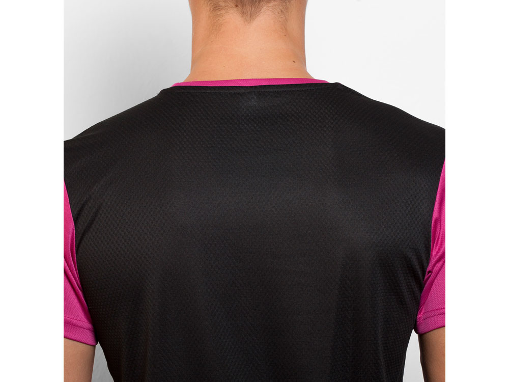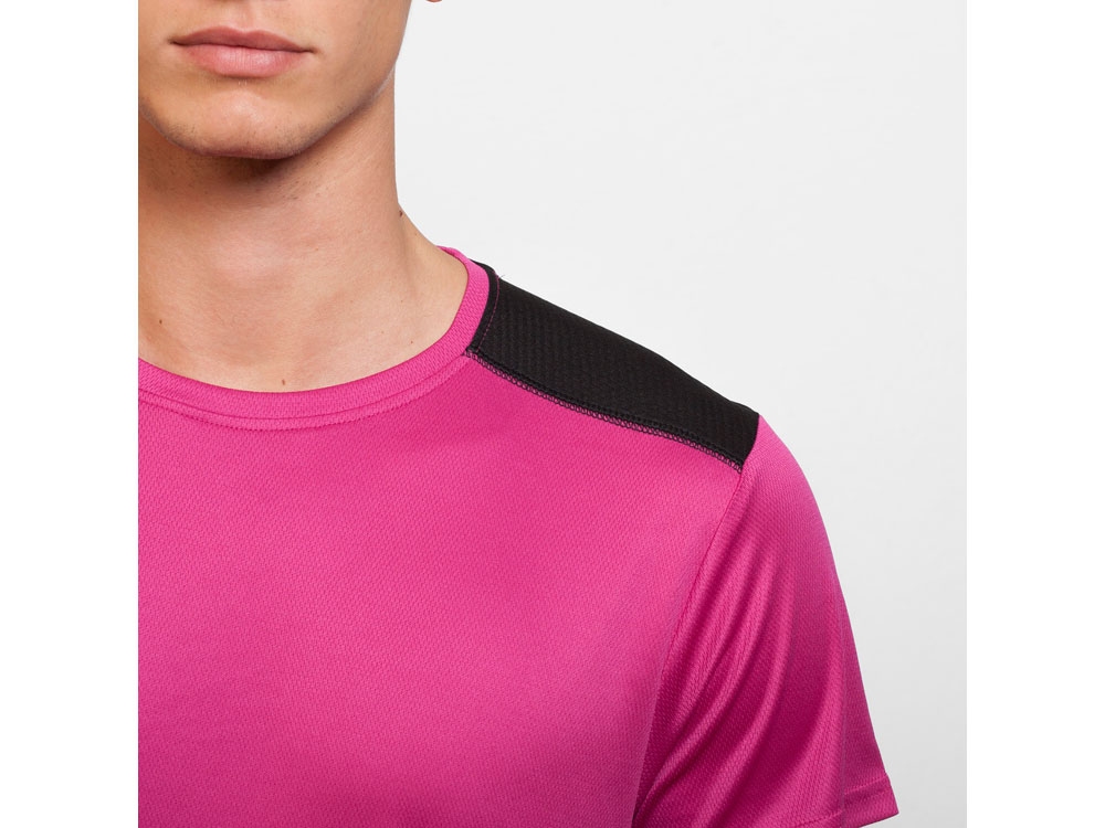Футболка с коротким рукавом из технологичного полотна. Круглый вырез горловины. Структурное полотно на полочке, и дышащее 3D сетчатое полотно на спинке отлично впитывает влагу. Декоративная зиг-заг отстрочка по плечам и боковым швам. Спинка немного длиннее