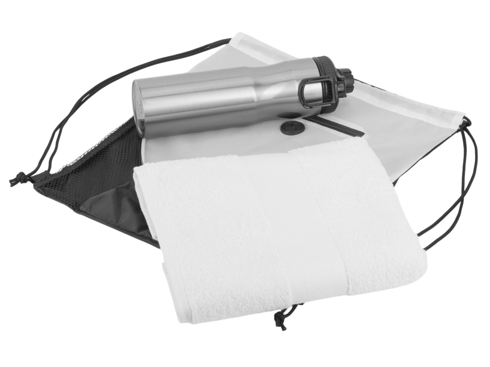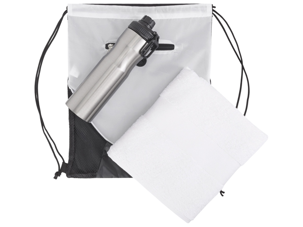 рюкзак- полиэстер 210D, полотенце- 100% хлопок, бутылка- нержавеющая сталь