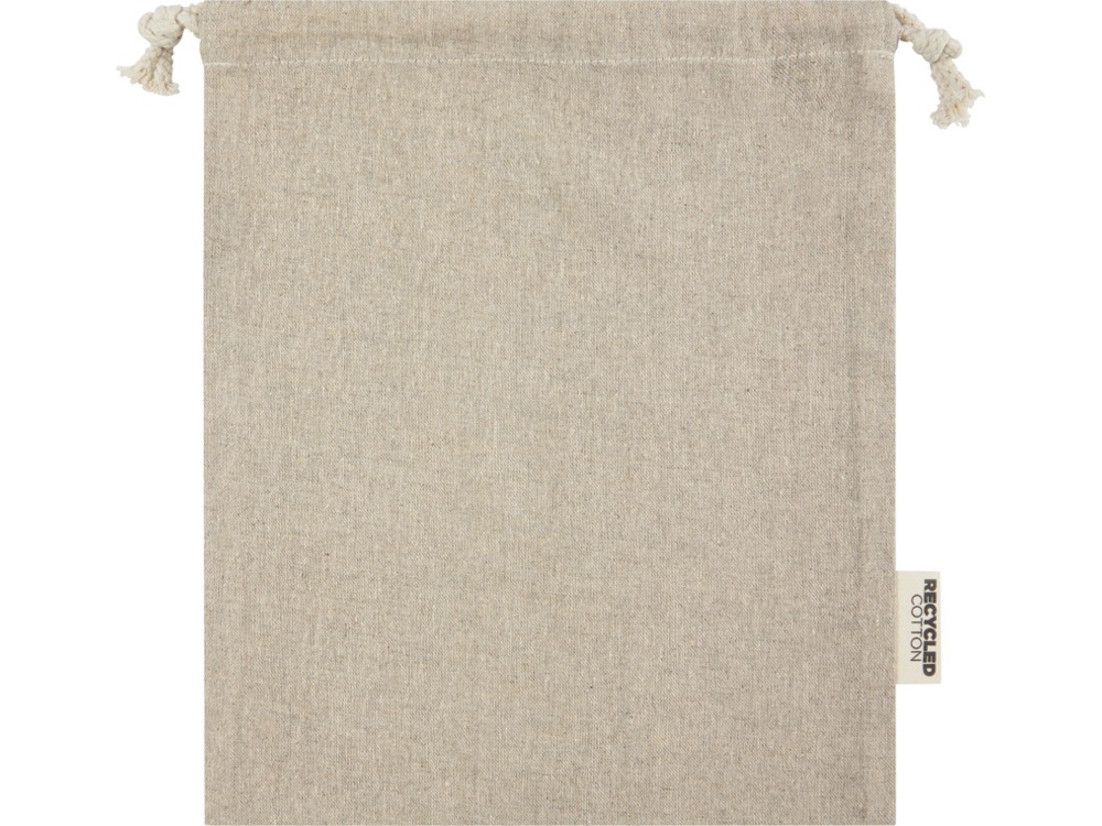 Подарочная сумка из хлопка, переработанного по стандарту GRS, с хлопковым шнурком для затягивания. Идеально подходит для подарков или хранения предметов. Размер: 25 x 30 см.