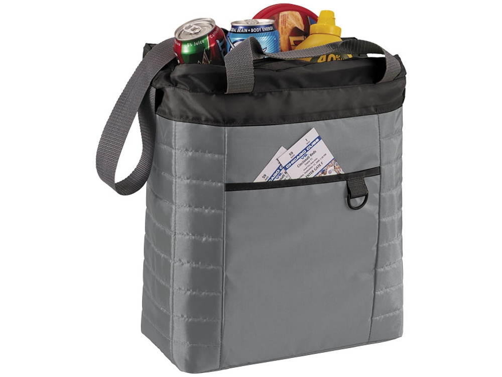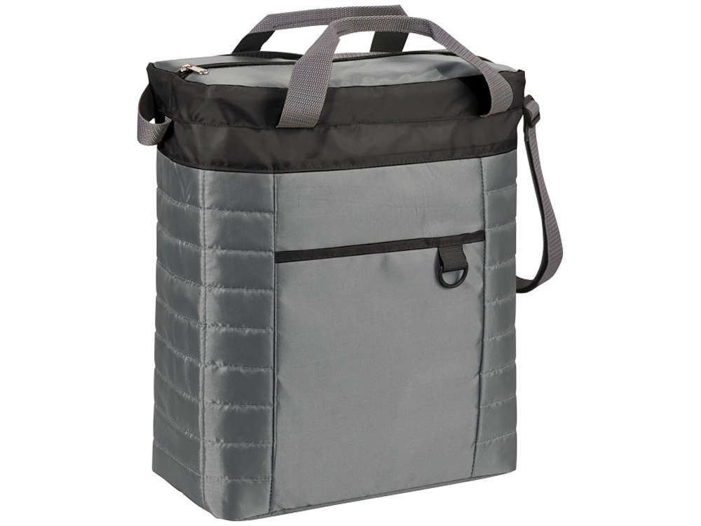 Стеганая сумка-холодильник. В комплекте: регулируемый ремень на плечо и ручки высотой 14 см. Стеганый корпус. Изоляционное отделение на молнии. Есть карман спереди и пластиковая петелька для ключей. 210D нейлон/ПВХ.