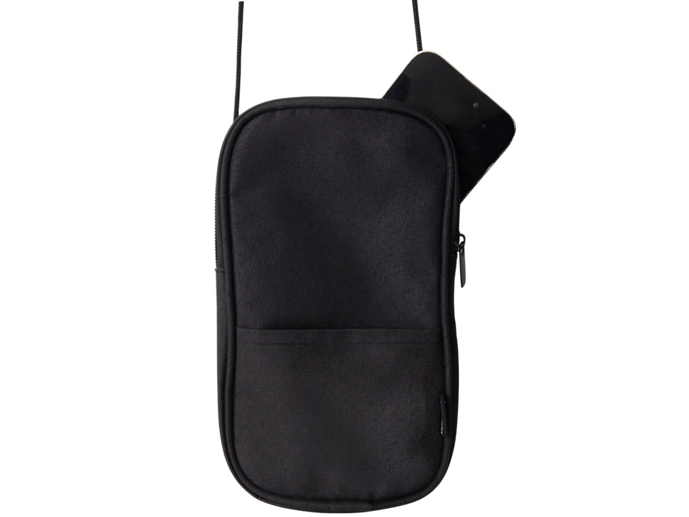 Мобильный чехол из полиэстера RPET. Основное отделение с застежкой-молнией. Внешний карман. В комплект входит шнурок для переноски. Длина шнурка 122 см.