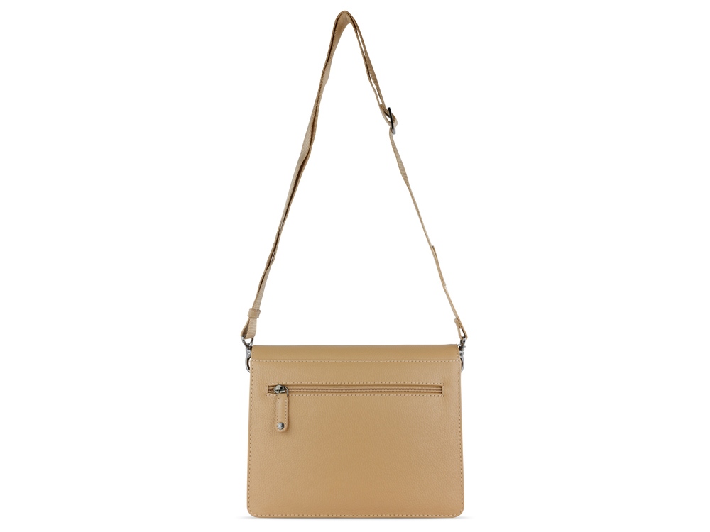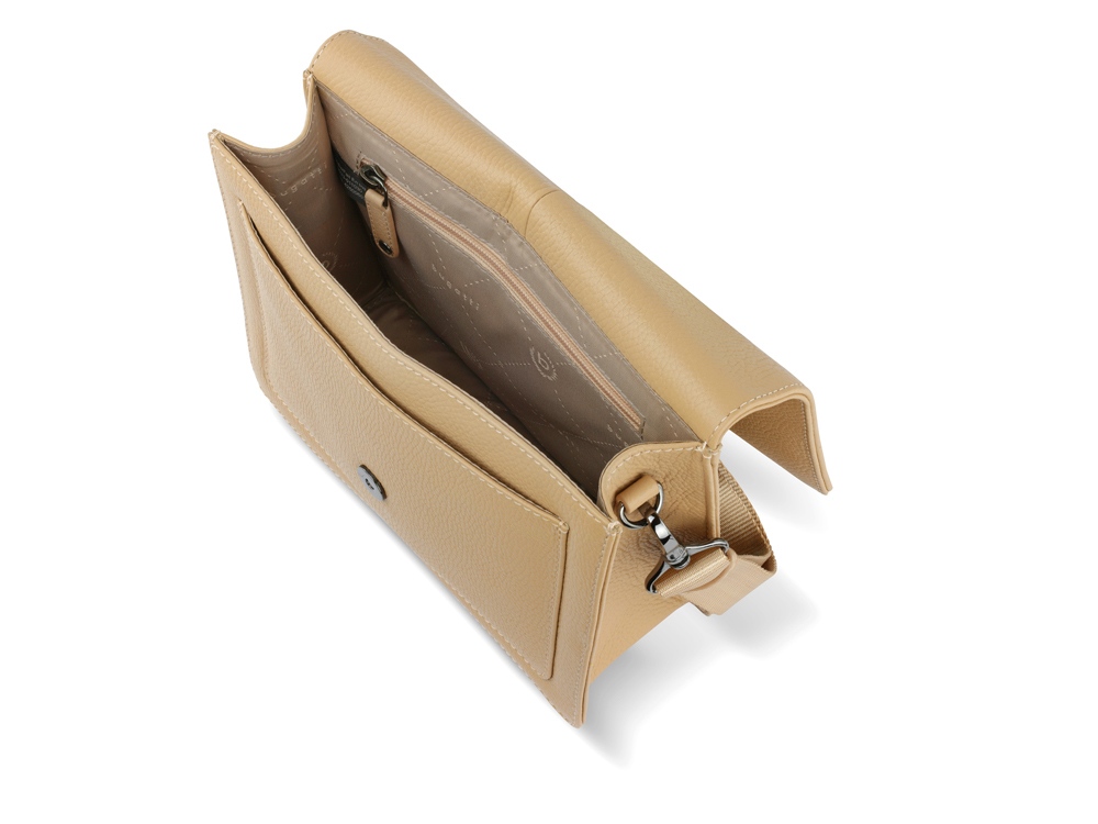 Функциональная организация: основное отделение на магнитной кнопке с карманом на молнии и открытым карманом, передний открытый карман, задний карман на молнии, съемный регулируемый плечевой ремень (до 130 см).
