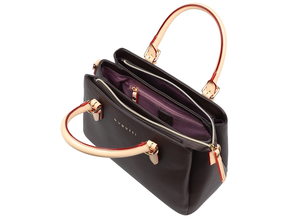 Внешняя организация: задний карман на молнии, ручки высотой 11 см, съёмный регулируемый плечевой ремень (до 130 см), ножки на дне
