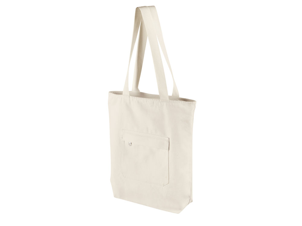 Преимущество этой сумки в наличии застежки молнии на основном отделении – ее содержимое остается закрытым. Донная складка увеличивает вместимость. Снаружи расположен карман на молнии. Парусиновые ручки в тон сумки.