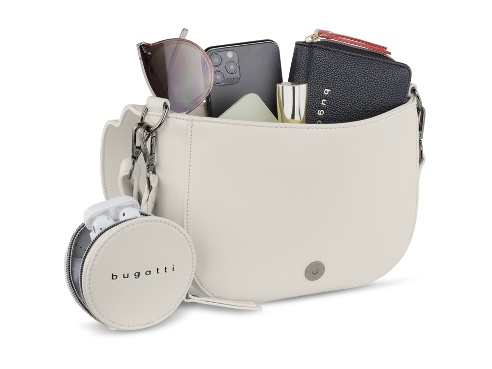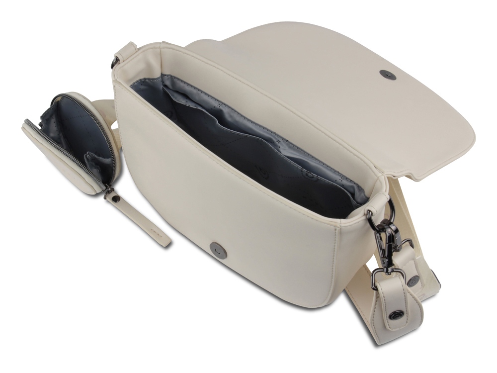 Внешняя организация: съёмный регулируемый плечевой ремень (до 50 см), съёмный регулируемый плечевой ремень (до 140 см) со съёмным кошельком на молнии