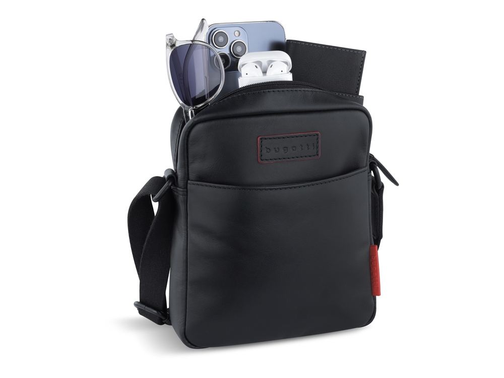 Внешняя организация: передний открытый карман, задний карман на молнии, регулируемый плечевой ремень (до 150 см), пыльник в комплекте.