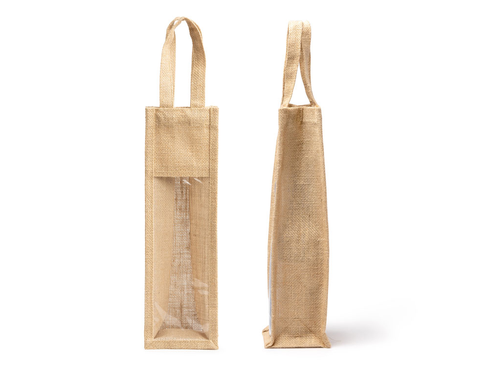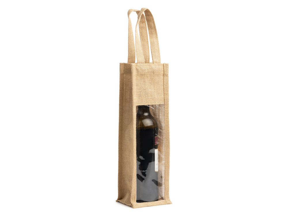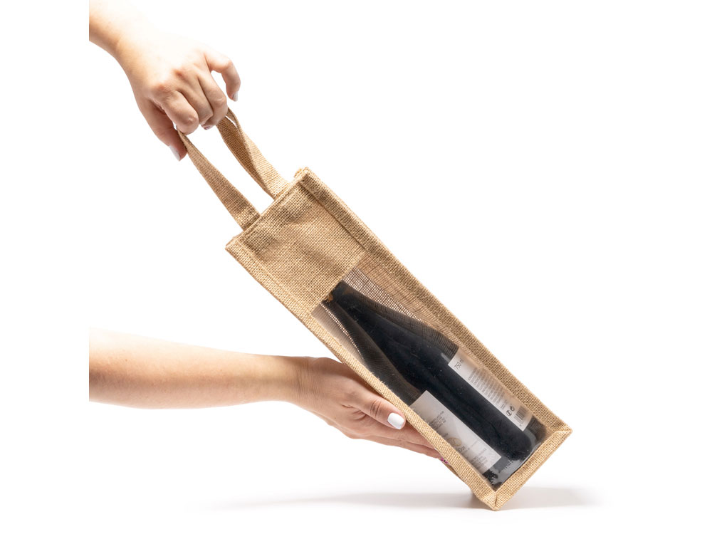 Сумка из ламинированного джута с окошком. Усиленные ручки. Идеально подходит для бутылок.