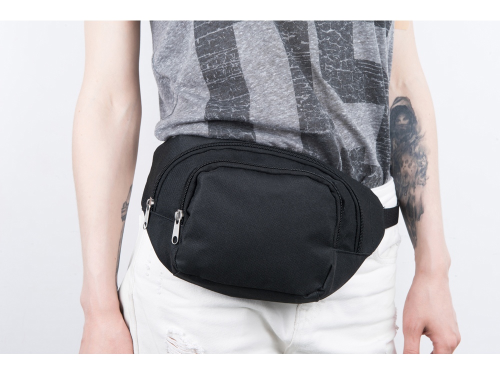 Сумка на пояс Expand будет отличным подарком для тех, кто не сидит на месте. Прекрасно послужит в путешествиях, но хорошо подходит и для повседневного использования. На внешний карман можно сделать нанесение оригинального изображения по вашему эскизу. Сумка имеет два кармана на молнии. Пояс тканевый, регулируется по ширине пояса (max 140 см) . Фиксаторы пластиковые.