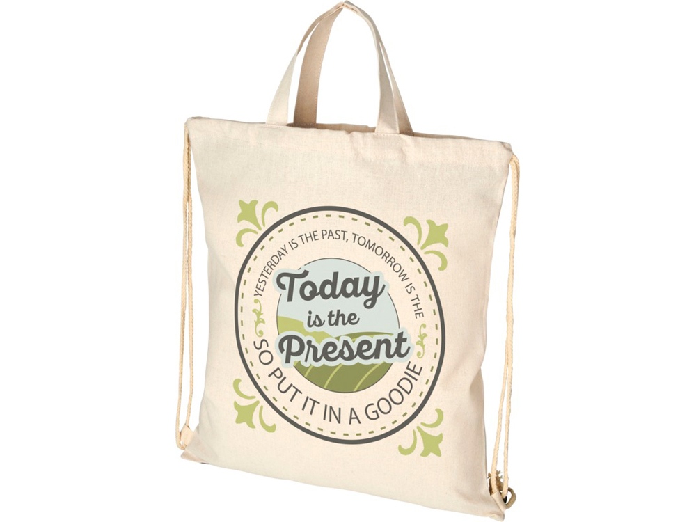Рюкзак со шнурком Pheebs из 210 г/м² переработанного хлопка. Вторичный хлопок изготавливается из отходов, предназначенных для потребления, которые производятся текстильными фабриками в процессе резки. Большое основное отделение затягивается хлопковым шнурком. Предназначен для ношения на плече или как рюкзак. Имеет две спадающие ручки высотой 31 см. Прочность до 5 кг. 210 г/м² переработанный хлопок.