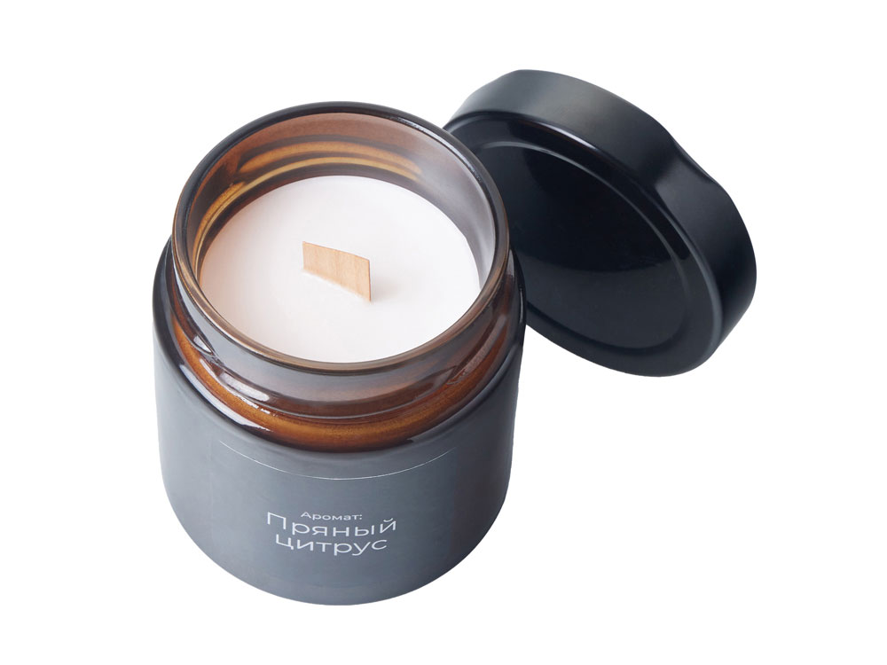 Деревянный фитиль мягко потрескивает, напоминая о треске дров в камине и усиливая атмосферу домашнего тепла.