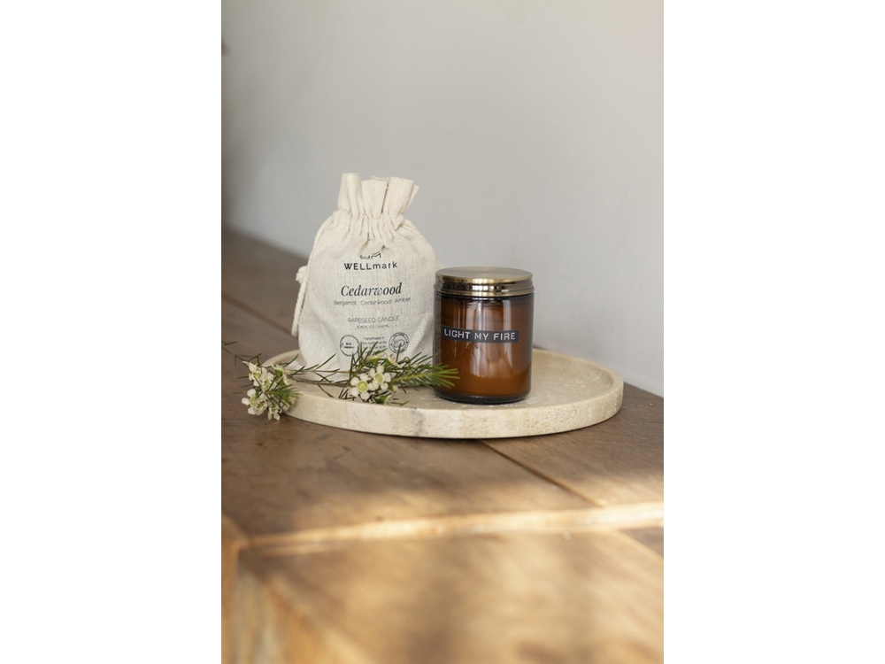 Ароматическая свеча среднего размера с ароматом кедрового дерева в коричневом стакане с латунной крышкой. Ароматическая свеча горит до 35 часов, и ее можно повторно использовать для хранения ватных дисков или для посадки милого маленького кактуса. Изделие изготовлено вручную в Нидерландах из 100% рапсового воска. Поставляется в хлопковом пакете. Переработанное стекло.
