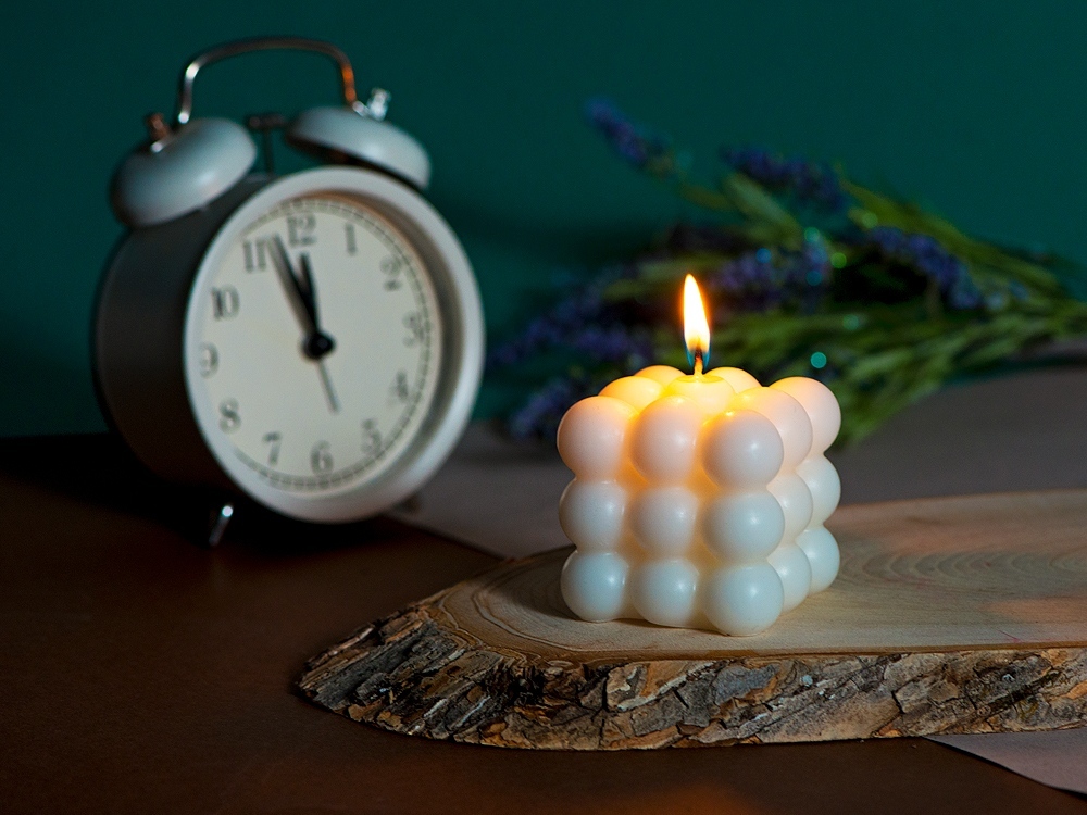 Свеча «Bubbles» подарит вам атмосферу уюта и тепла. Её нежный и «воздушный» дизайн будет прекрасно смотреться в любом интерьере. – необычный дизайн – без отдушек – хлопковый фитиль