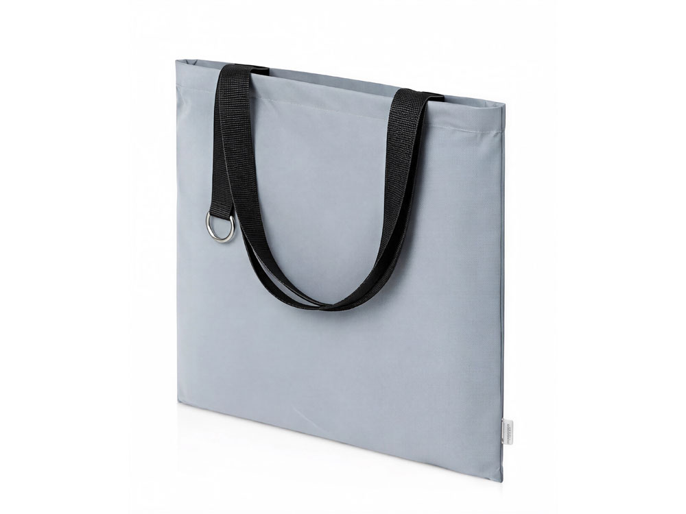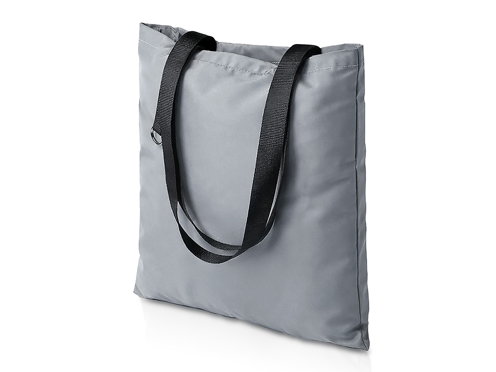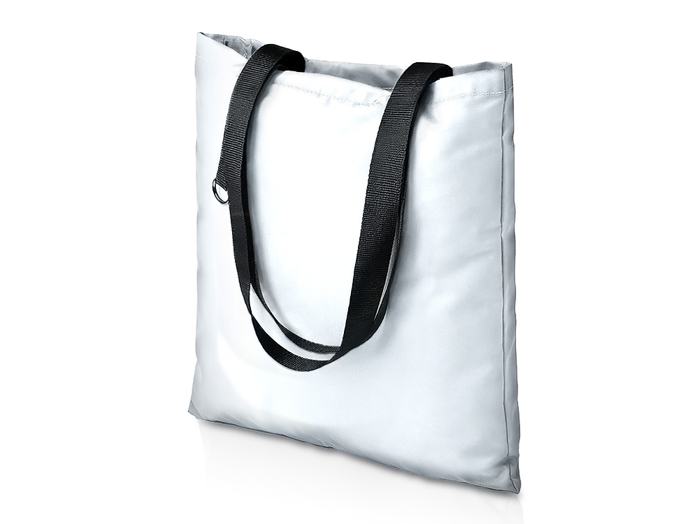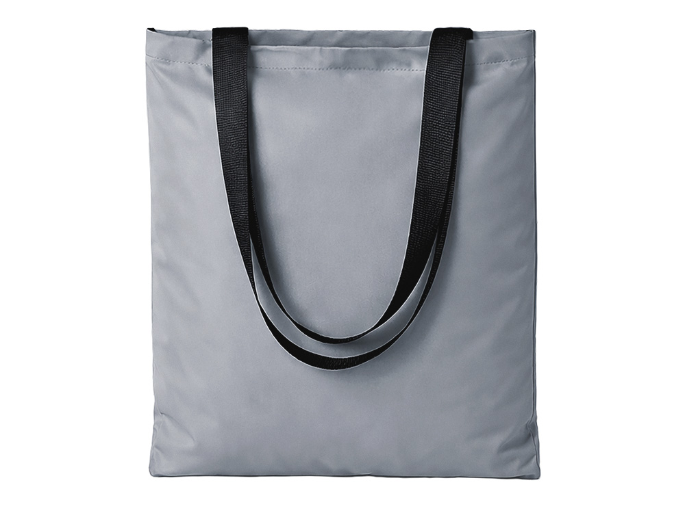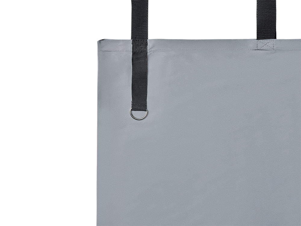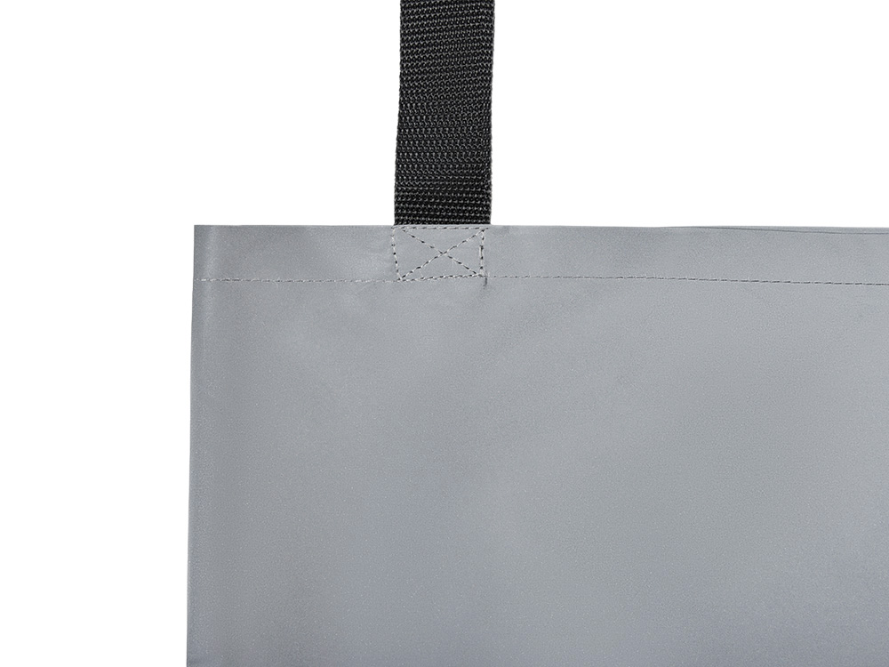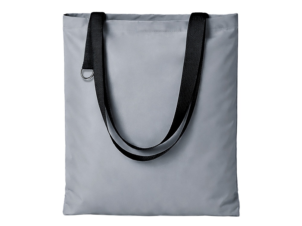 Сумка для покупок из светоотражающей ткани обеспечивает дополнительную защиту в темное время суток. Прочные ручки длиной 68 см. Металлическое д-кольцо на хлястике предусмотрено для крепления ремувок с вашим логотипом.