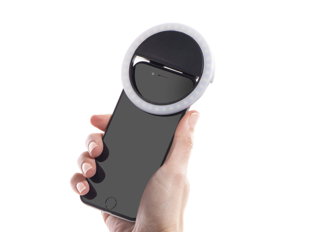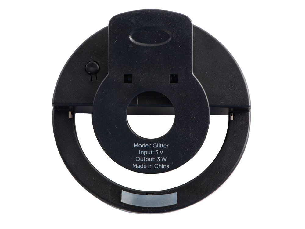 Световое кольцо “Glitter” делает ваши селфи- фото и видео более качественными за счет дополнительного освещения. Подсветка представлена нейтральным белым цветом от 48 светодиодов с 3 режимами яркости. Время непрерывного свечения – до 2 часов. Можно быстро зарядить от любого пауэрбэнка по micro USB. Благодаря удобной конструкции селфи-кольцо устанавливается и снимается за секунду. На корпусе имеются силиконовые защитные полоски, чтобы исключить даже малейшие повреждения экрану смартфона.