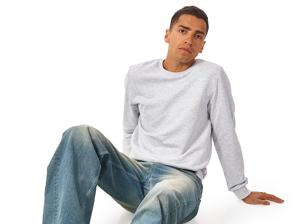 Свитшот из плотного 3х ниточного хлопкового футера. Горловина, манжеты и низ отделан рибом 2х2. Горловина спинки внутри дополнительно укреплена тесьмой с выработкой елочка. Полотно из утяжеленного хлопкового футера внутри с петельками без начеса. Модель прекрасно подходит для промо мероприятий и повседневной жизни.