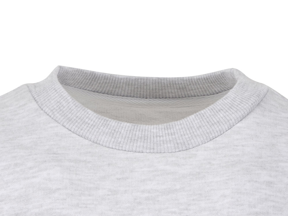 Свитшот из плотного 3х ниточного хлопкового футера. Горловина, манжеты и низ отделан рибом 2х2. Горловина спинки внутри дополнительно укреплена тесьмой с выработкой елочка. Полотно из утяжеленного хлопкового футера внутри с петельками без начеса.