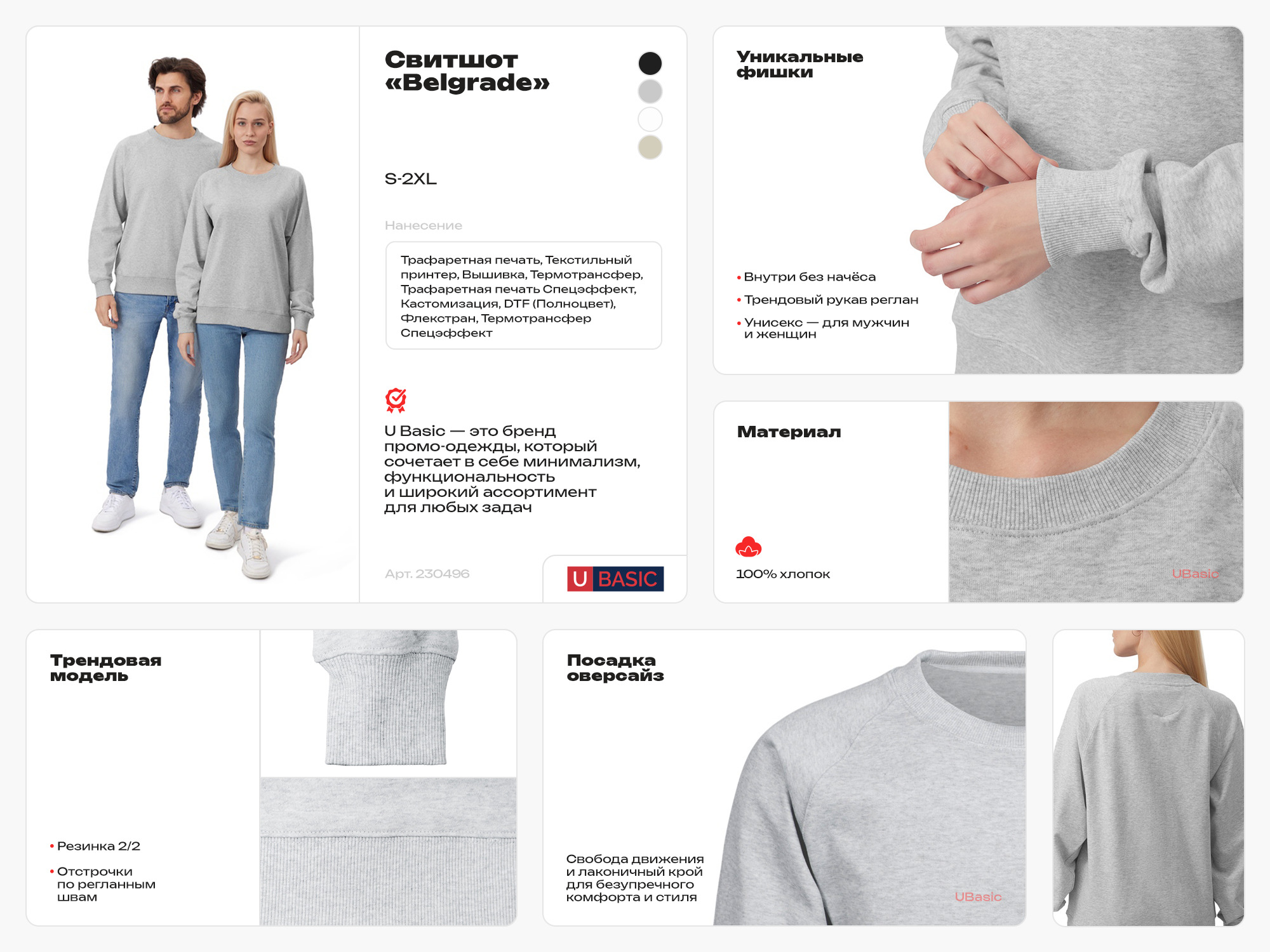 Благодаря крою рукава реглан свитшот сидит комфортно по фигуре. Материал —3х-ниточный футер из гребенного хлопка, долго носится и не требует сложного ухода. Брендируется наиболее популярными для текстиля методами. — рукав реглан — внутри без начеса — оверсайз — модный и актуальный силуэт — дополнительное место для нанесения — внутри спинки под горловиной