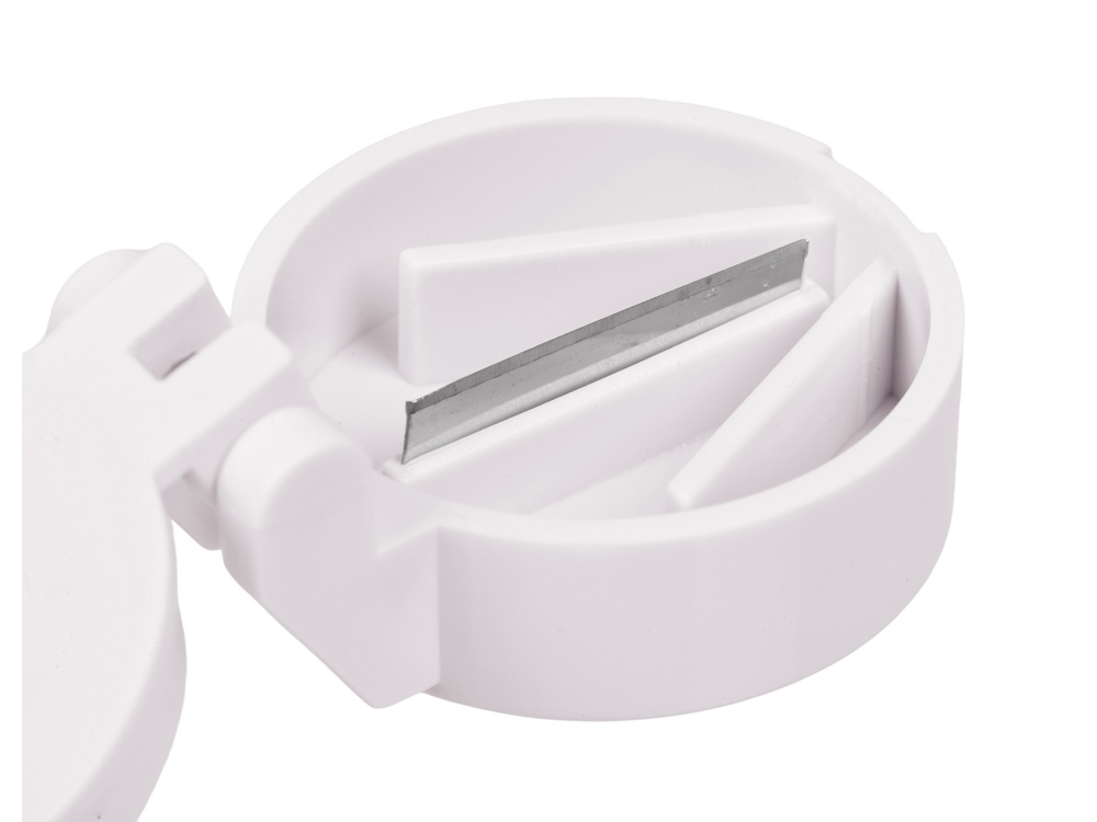 1. Резак. Под крышкой установлен специальный резак, который поможет быстро и аккуратно поделить таблетку на 2, 3 и большее количество частей, чтобы точно соблюсти дозировку лекарств;