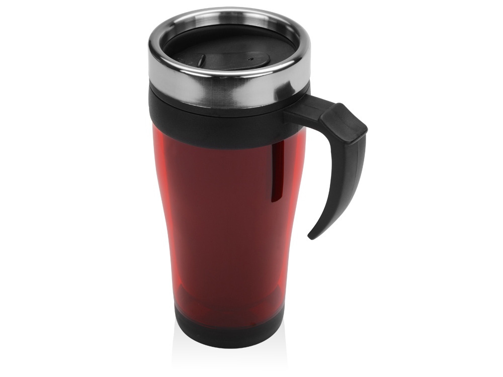 Подарок для активных людей! Стильная кружка с термоизоляцией на 400 мл. поможет сохранить ваши напитки теплыми в течение 3 часов. Подходит для стандартного подстаканника в автомашине или в поезде. На пластиковую поверхность корпуса возможно нанесение логотипа вашей компании.