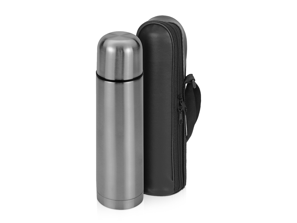 Термос — один из универсальных видов подарков, который уж точно не будет пылиться на полке. Термос на 500 мл имеет компактные размеры, его удобно носить в сумке или брать с собой в автомобиль и он сохранит ваши напитки горячими 24 часа. На глянцевой металлической поверхности прекрасно будет смотреться лазерная гравировка. Термос идет в комплекте с дорожным чехлом.