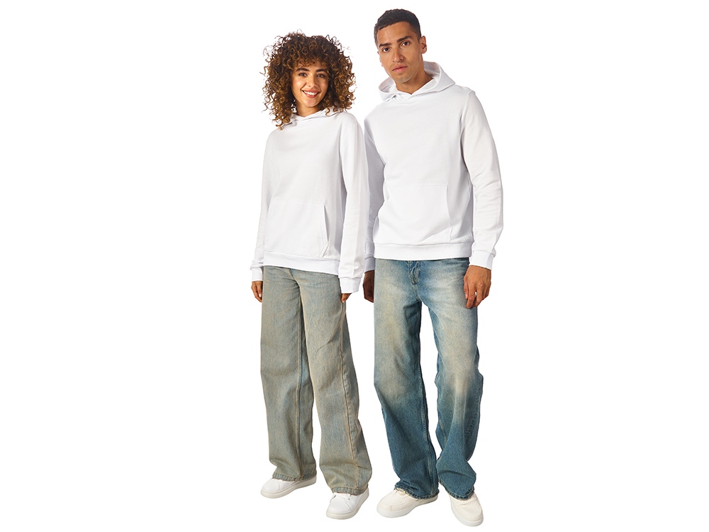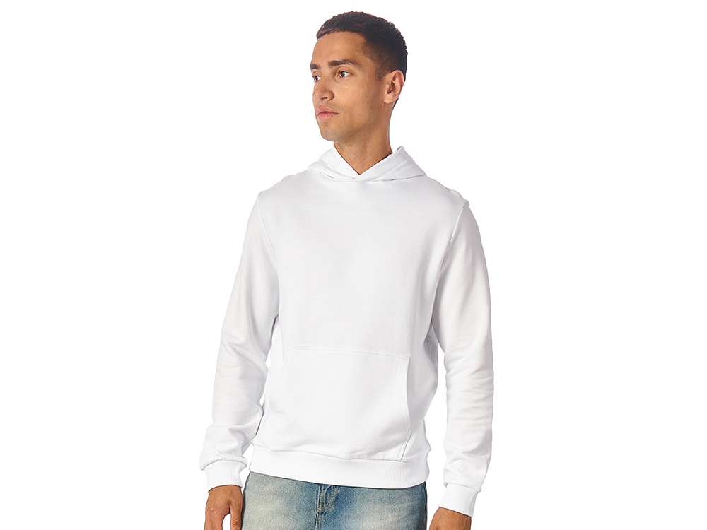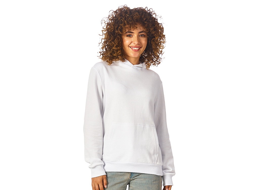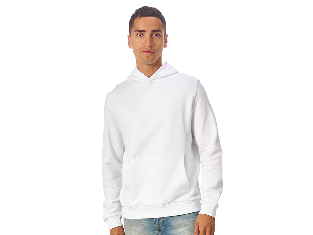 Толстовка с капюшоном (худи) из плотного хлопкового 3х ниточного футера. В капюшоне подкладка в тон, а горловина спинки дополнительно укреплена тесьмой с выделкой «елочка». Капюшон без шнурков – ничего не отвлекает от вашего брендирования. Манжеты и низ изделия отделаны рибом 2х2. Глубокий комфортный карман кенгуру на полочке. Полотно из утяжеленного хлопкового футера внутри с петельками без начеса.